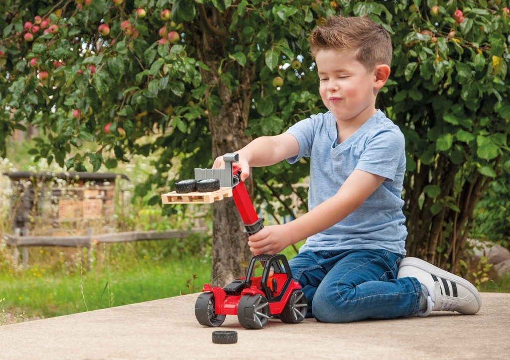 Hurá na písek do budování staveb, které vám bude každý závidět! Teleskopický nakladač z řady TRUXX 2 zaujme každého malého stavitele. Nakladač je mechanicky funkční, je vyroben z vysoce odolného materiálu a součástí je odklopitelná kabina a aktivní panáček. Pogumovaná kola s tichým chodem potěší všechny rodiče.