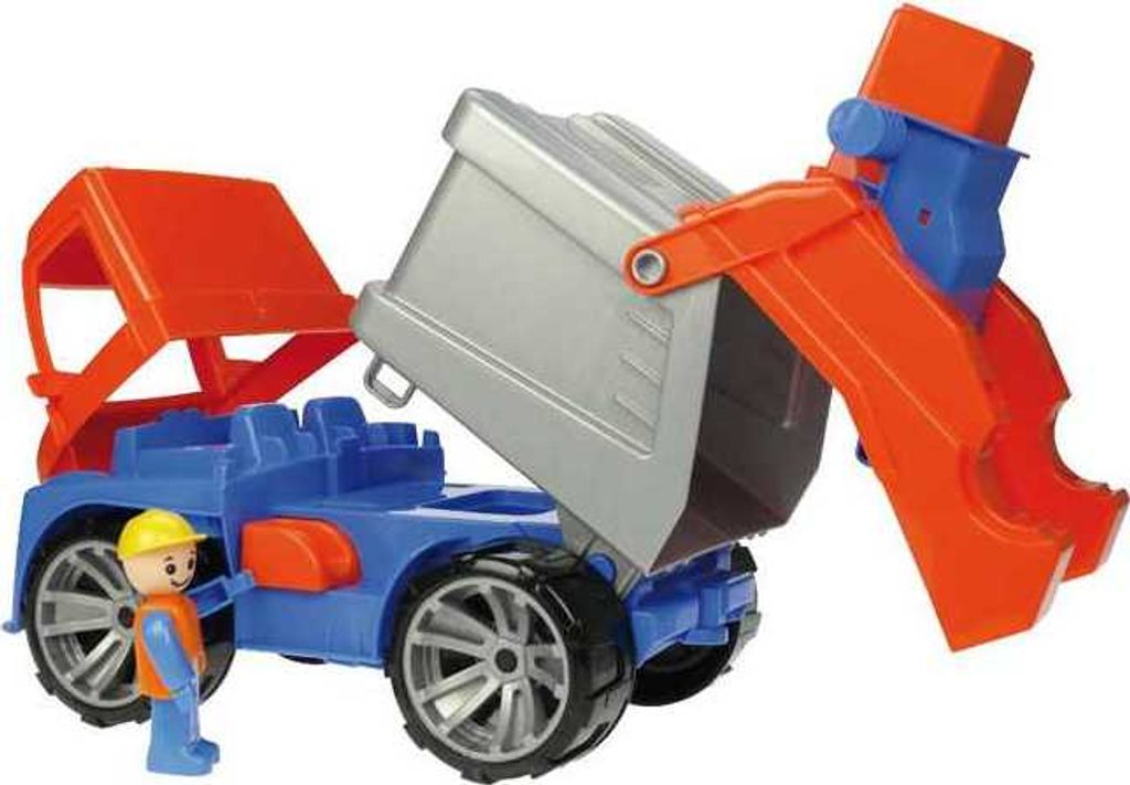Barevný dětský truxx popelář s figurkou, který je ideální na písek. Součástí auta, je také pojistka proti vyklopení.
