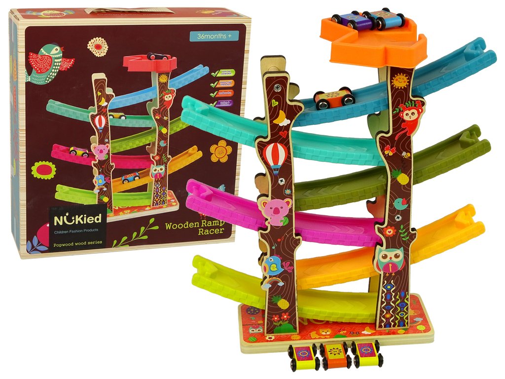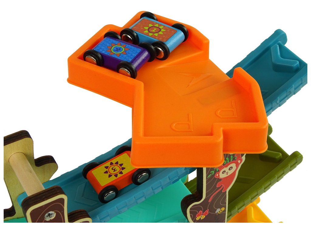 Dráha je barevná a má 6 pater, stačí položit auto na vršek skluzavky a sledovat, jak klouže až dolů. Každý z nich je označen čísly. Několik aut najednou a závod! Vaše dítě se naučí řídit auta na nakloněném povrchu. Dráha jistě zaujme každé dítě, takže se bude rádo dívat na auta.