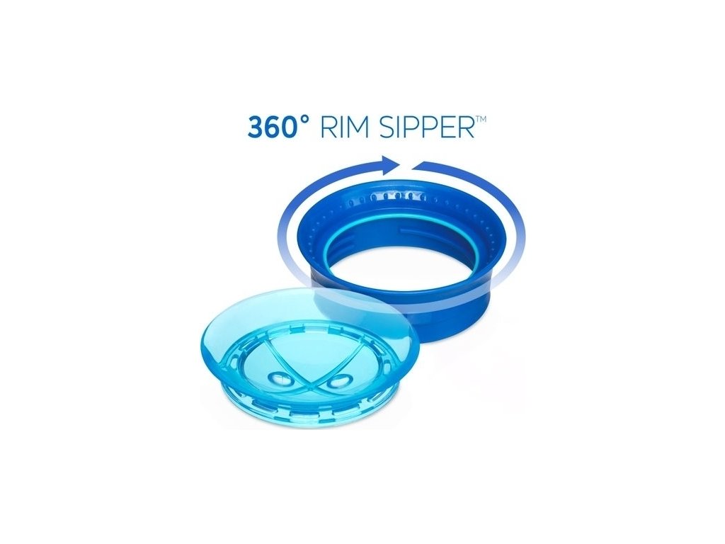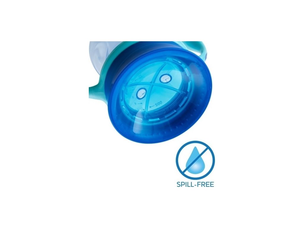 Speciální silikonová membrána chrání okraj šálku před rozlitím tekutiny v něm nalezené. Dítě může pít odkudkoliv kolem okruhu šálku! Ergonomické úchyty budou skvělé pro začátek, s časem je můžete odstranit.