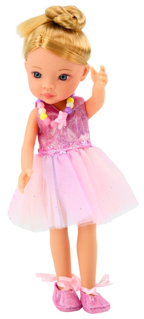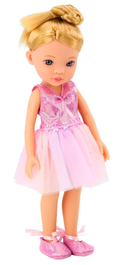 Elegantní a jedinečná panenka balerína, která se stane oblíbenou parťačkou každé dívky, která sní o tanci a baletu. Panenka je impozantních 33 cm vysoká, díky čemuž je ideální pro hraní a prezentaci v kolekci. Panenka má dlouhé blonďaté vlásky stylově svázané do drdolu, jak se na pravou baletku sluší. Má na sobě růžové lesklé šaty s rozšířenou sukní, která se na světle krásně třpytí. Panenka má na sobě růžové lesklé boty, které se zavazují kolem kotníku a dokonale ladí s jejím baletním oblečením. Má pečlivě namalované oči a rty, což jí dodává na šarmu a vypadá jako skutečná baletka. Díky detailům, jako je drdol, lesklé šaty a make-up, panenka vypadá velmi realisticky a stylově. Panenka je vyrobena z vysoce kvalitních materiálů, což zajišťuje odolnost a bezpečnost při hře. Ideální pro rozvoj dětské představivosti a kreativity hraním různých baletních scén a vytvářením vlastních příběhů. Panenka balerína je skvělým doplňkem do sbírky hraček každé holčičky.