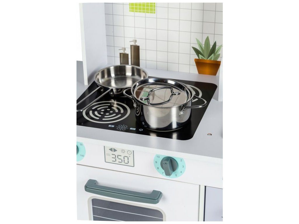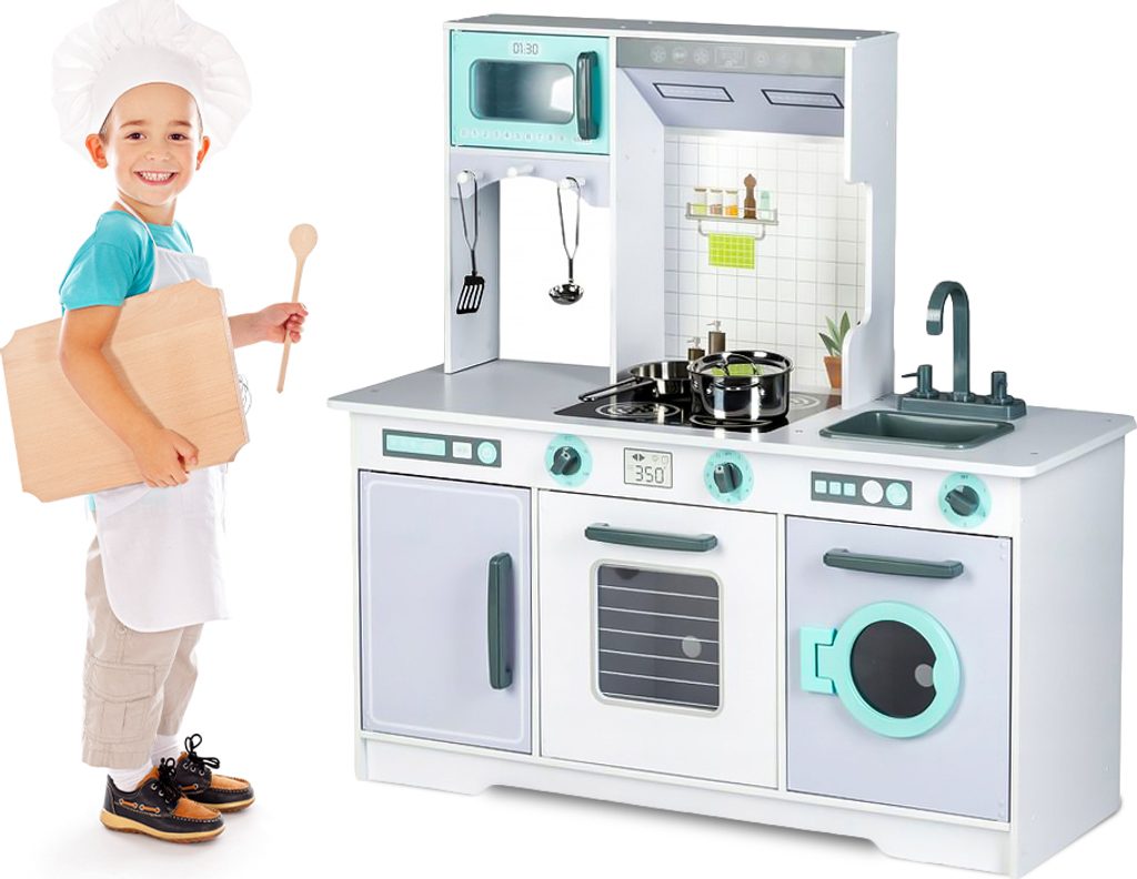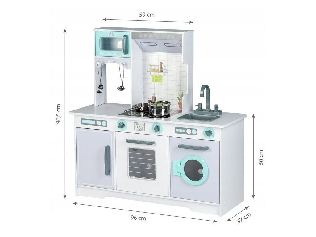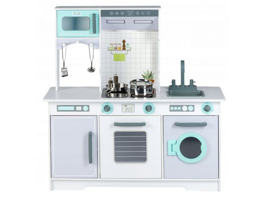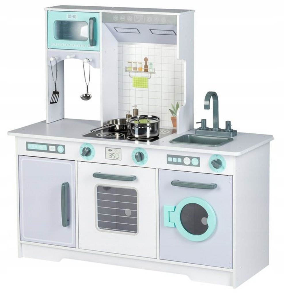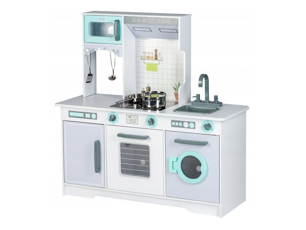 Dřevěná dětská kuchyňka Ecotoys s příslušenstvím pro děti od 3 let věku. Je vybavena celkem 5 kusy hliníkového nádobí. Vaše dítě se určitě s touto velkou kuchyňkou nudit nebude. Trouba a šuplík jsou otevírací. Otočné jsou také vypínače u sporáku. Je vyrobena pouze z kvalitního dřeva v pestrobarevném provedení.