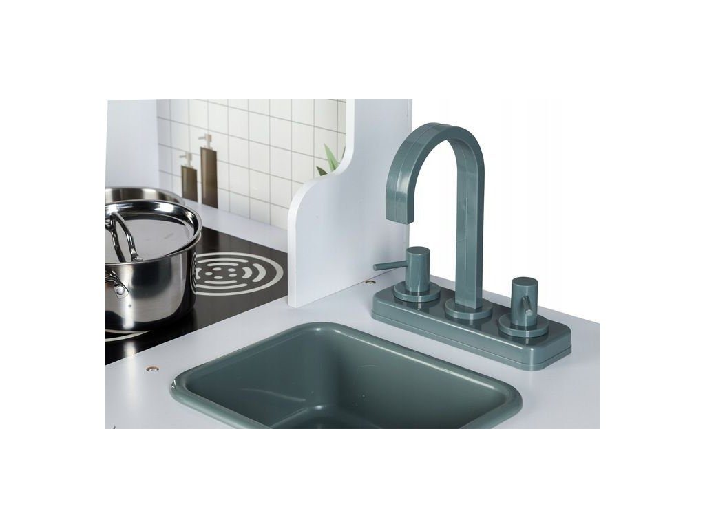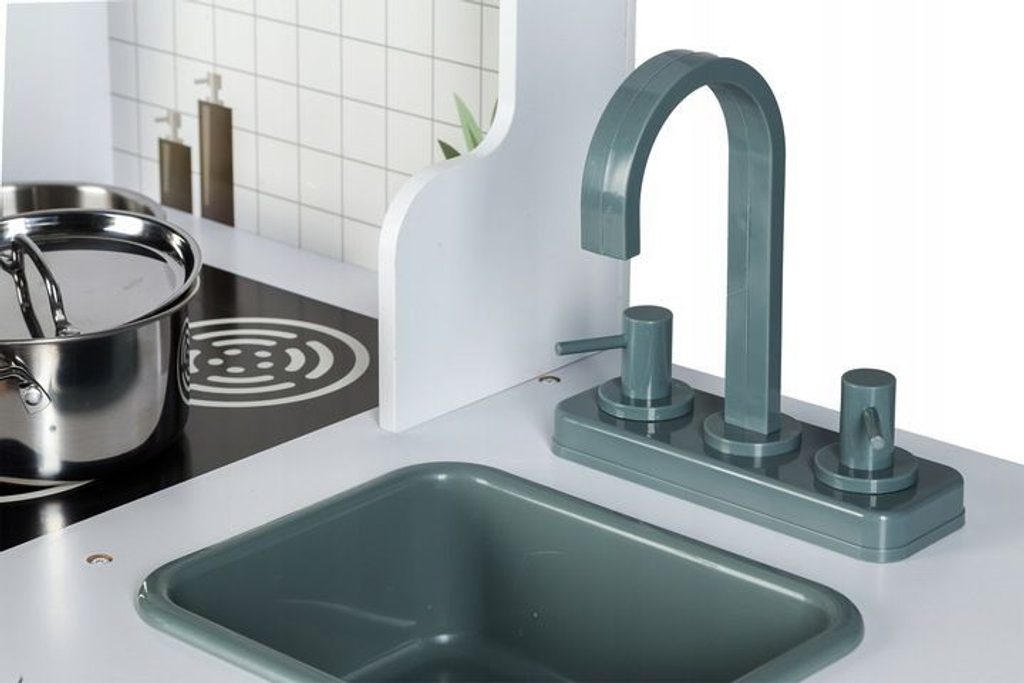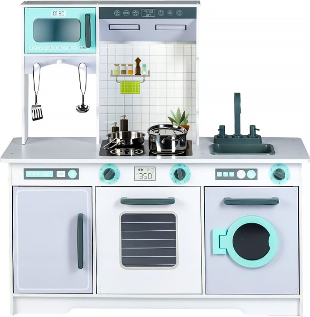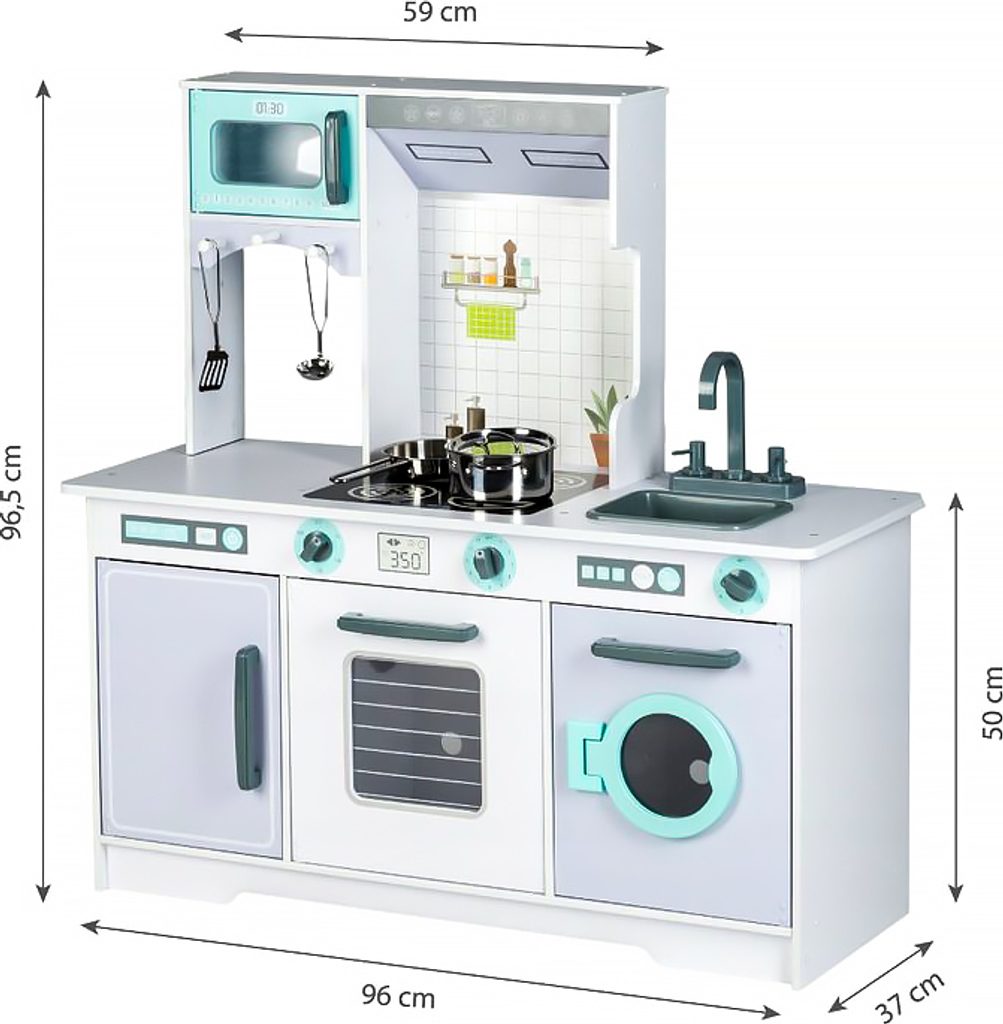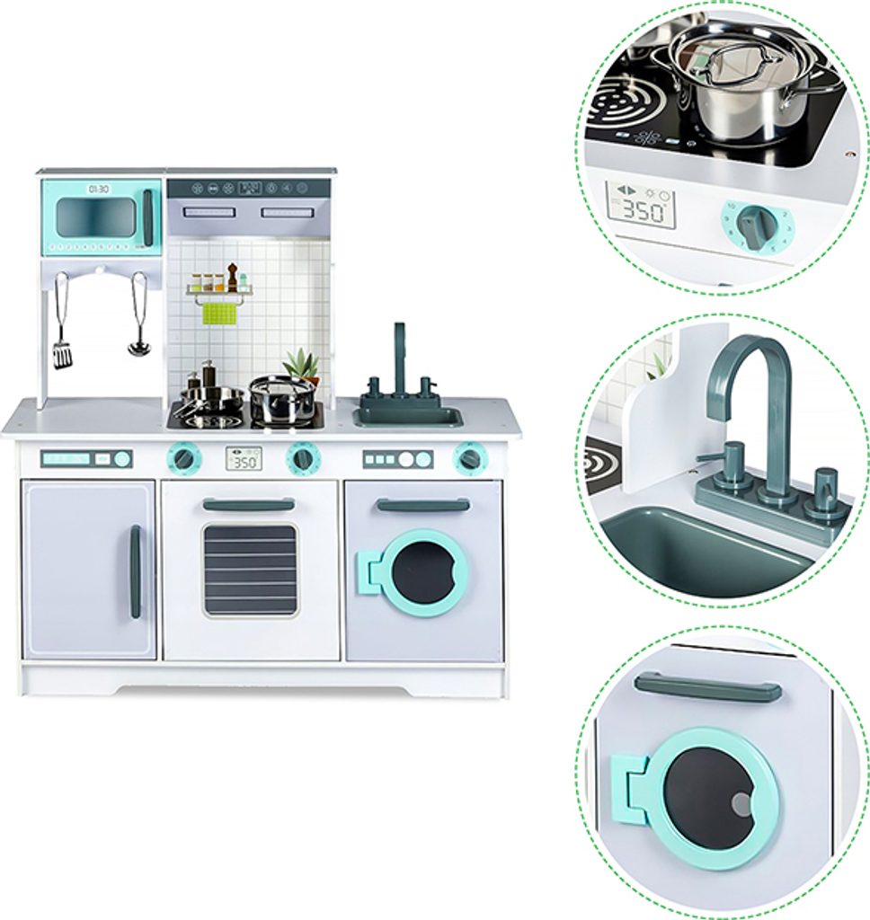 Dřevěná dětská kuchyňka Ecotoys s příslušenstvím pro děti od 3 let věku. Je vybavena celkem 5 kusy hliníkového nádobí. Vaše dítě se určitě s touto velkou kuchyňkou nudit nebude. Trouba a šuplík jsou otevírací. Otočné jsou také vypínače u sporáku. Je vyrobena pouze z kvalitního dřeva v pestrobarevném provedení.