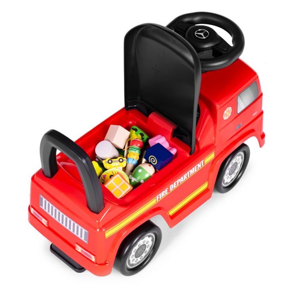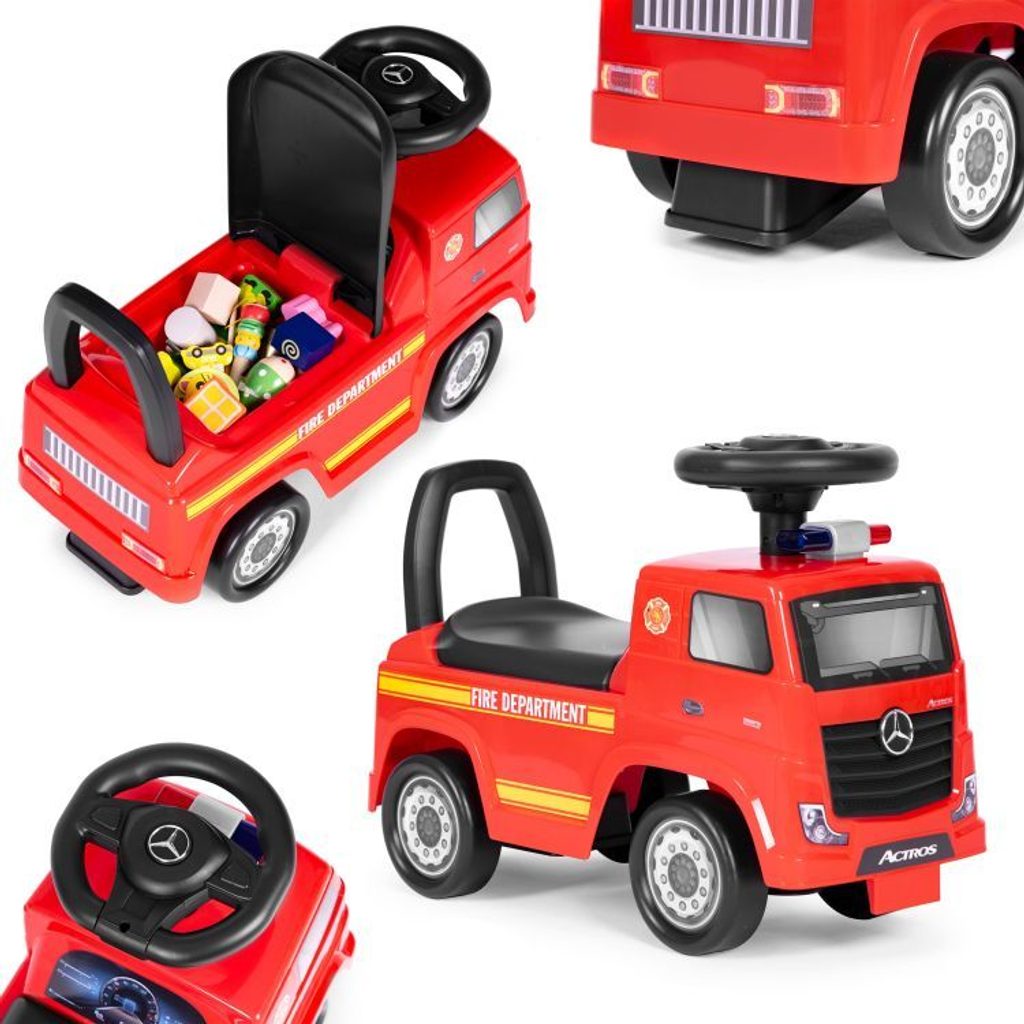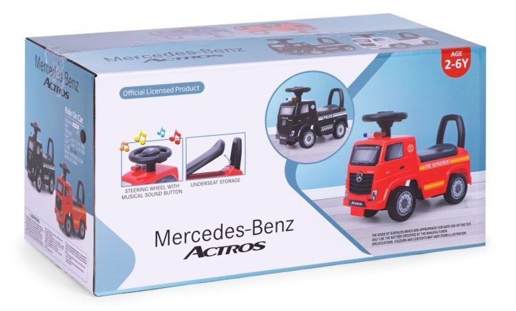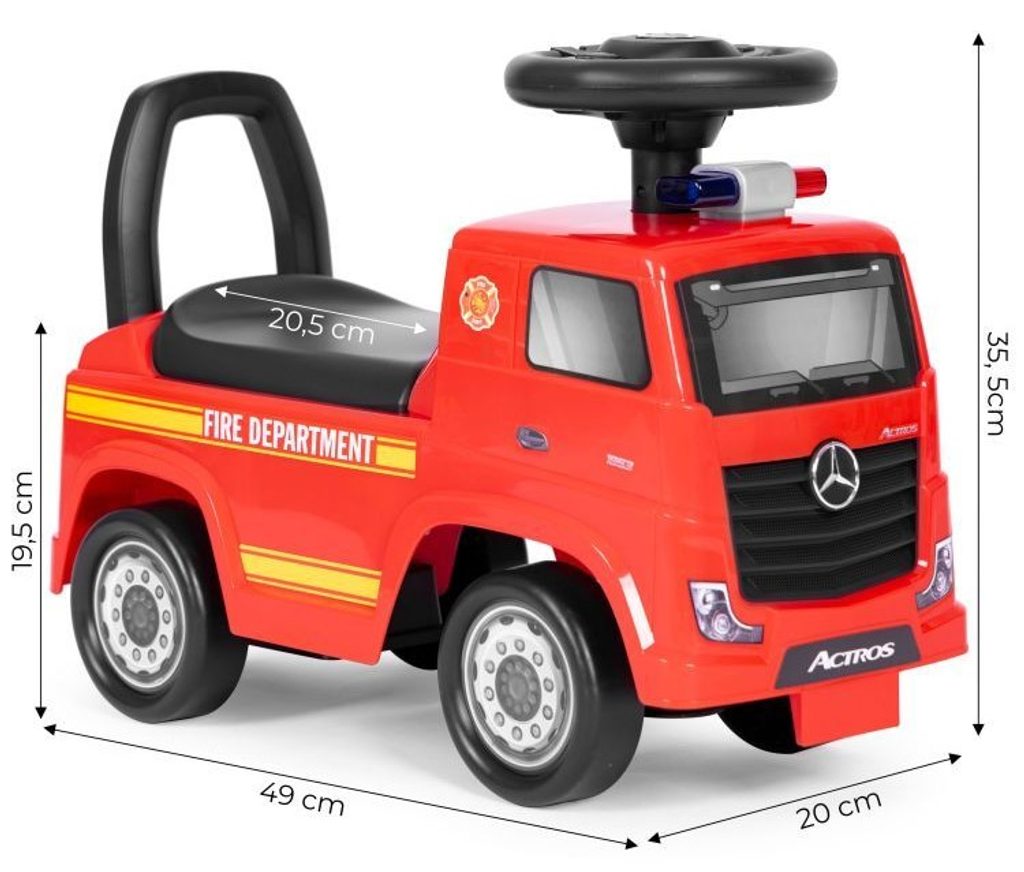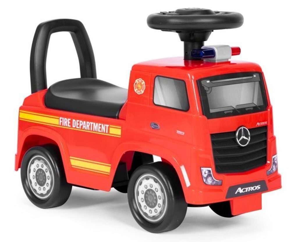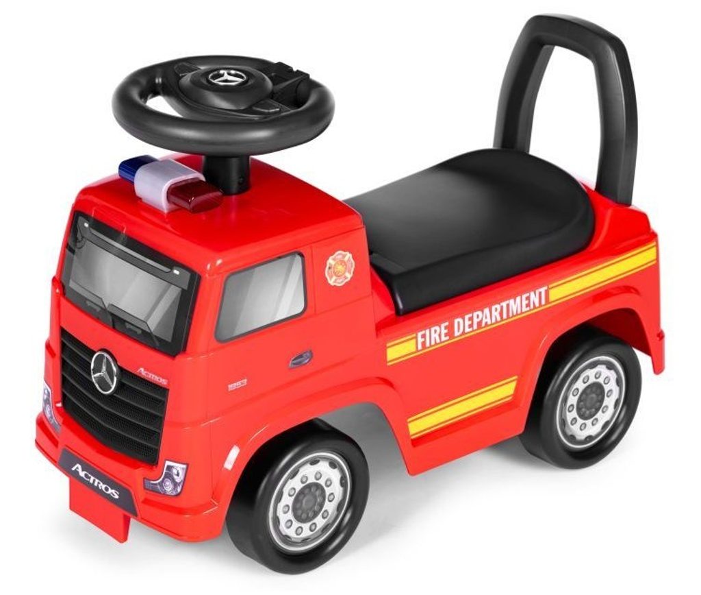 Dětské odrážedlo Mercedes Actros v provedení požárního vozu je určeno pro ty nejmenší děti. Pod sedátkem je umístěn úložný prostor pro hračky. Je vybaveno tlačítkem, které spouští melodie a klakson. Odrážedlo je vhodné pro děti od 24 měsíců. Tvar hračky pomáhá rozvíjet motorické schopnosti dítěte a navíc se bude cítit jako skutečný řidič.