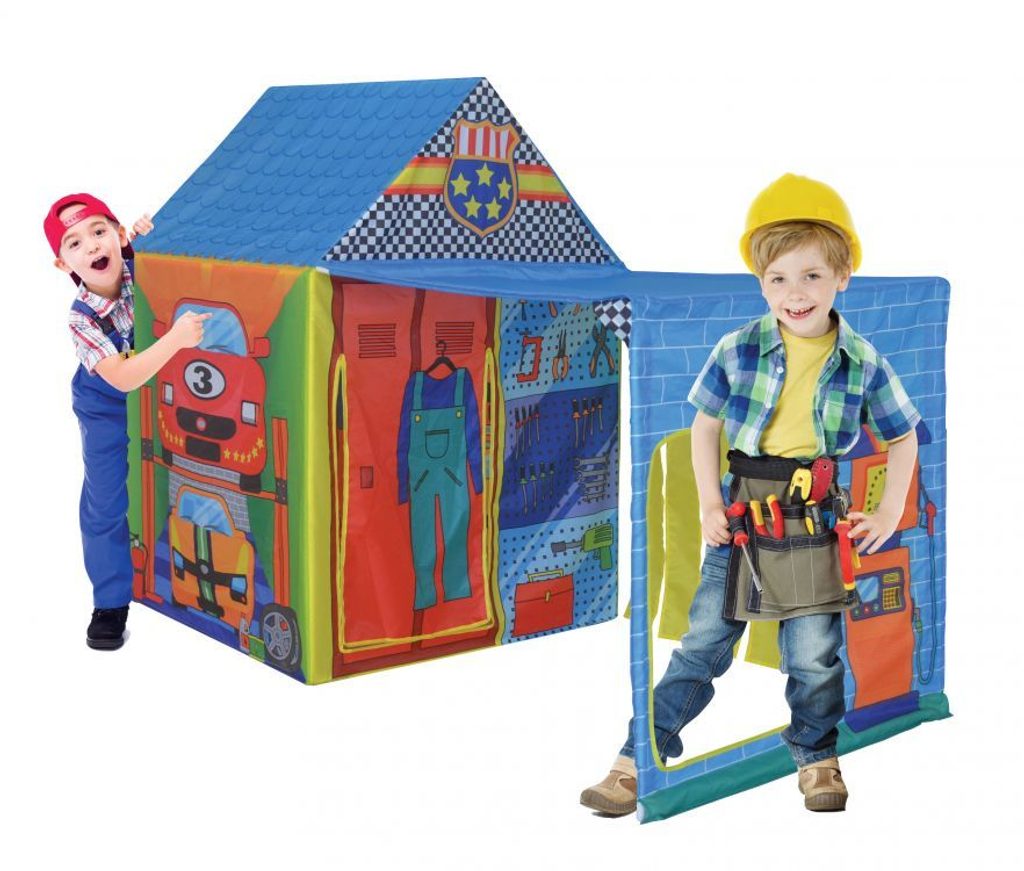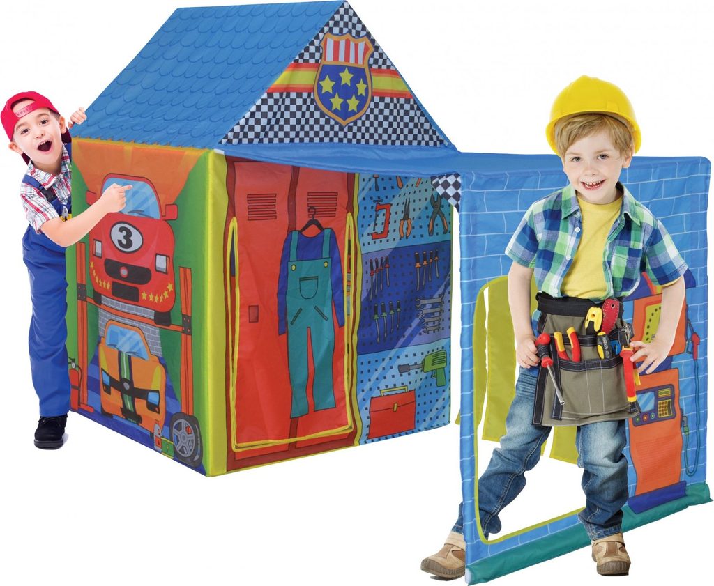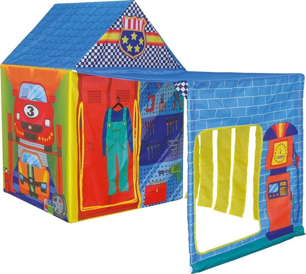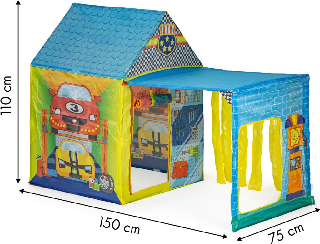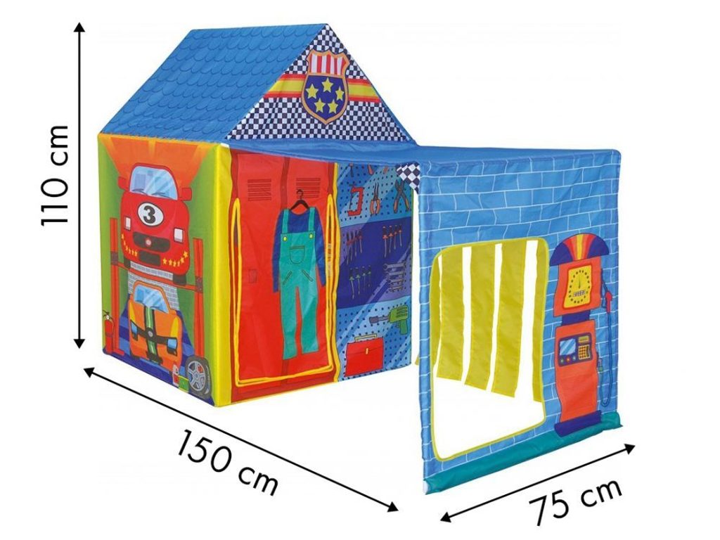 Ecotoys dětský stan Autoservis v provedení autodílny s praktickým přístřeškem. Je vhodný jak do vnitřních prostor tak i pro venkovní použití. Vchod do stanu je nastavitelný, můžete tak nastavit množství světla, které bude pronikat dovnitř stanu. Svrchní materiál je polyester s obrázky aut, benzínového stojanu a nářadí. Montáž stanu je velmi a snadná a rychlá, což oceníte zejména při jeho přemíst'ování.