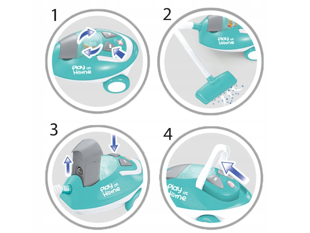 Děti pozorují dospělé a rády je napodobují, takže poznávají své nejbližší okolí a svět. Série hraček napodobujících zařízení z každodenního života umožňuje dětem hrou se učit a poznávat určité hodnoty. Dětský vysavač je skvělé vybavení z řady malých domácích spotřebičů. Vysavač funguje jako opravdový, po zapnutí pohltí odpadky, polystyrenové kuličky v sadě a uvnitř vysavače. Zaoblené hrany vysavače zaručují bezpečnou hru.