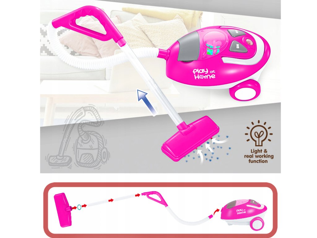 Děti pozorují dospělé a rády je napodobují, takže poznávají své nejbližší okolí a svět. Série hraček napodobujících zařízení z každodenního života umožňuje dětem hrou se učit a poznávat určité hodnoty. Dětský vysavač je skvělé vybavení z řady malých domácích spotřebičů. Vysavač funguje jako opravdový, po zapnutí pohltí odpadky, polystyrenové kuličky v sadě a uvnitř vysavače. Zaoblené hrany vysavače zaručují bezpečnou hru.