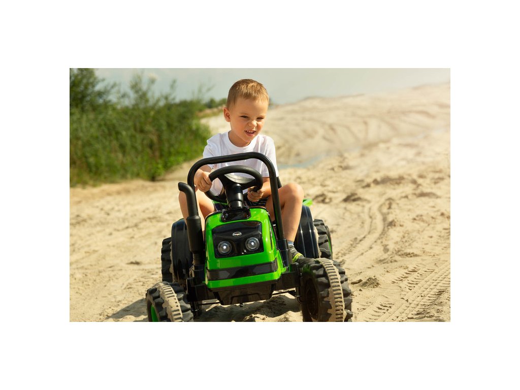 Traktor Hector je vozidlo určené pro outdoorová dobrodružství, kde ukazuje svůj plný potenciál. Pevná plastová kolečka a výkonný motor zajišťují snadný pohyb v těžším terénu. Odolná konstrukce a velké sedátko zajistí zábavu dětem do 8 let (max. 25 kg). Zábavu z jízdy zvyšují doplňkové funkce: odnímatelný přívěs se sklápěčkou, led světla, rádio s bluetooth a mp3. Hector je také vybaven standardními řešeními používanými ve vozidlech TOYZ: bezpečnostní pásy, automatická brzda, pomalý start a dálkové ovládání.