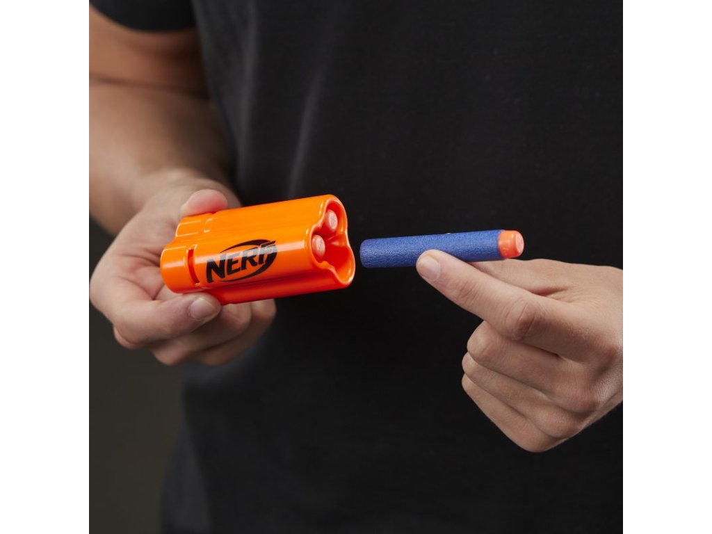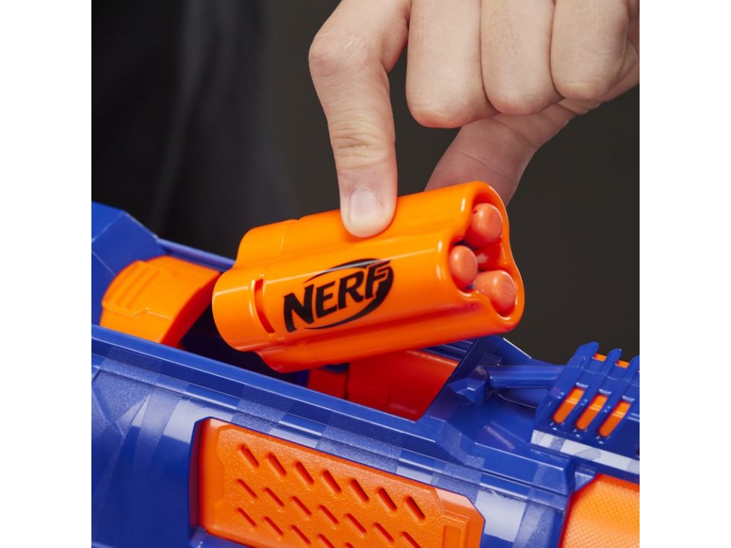 Nerf N-Strike - Trilogy DS-15 E2853 Rifle obsahuje vypadavající střely a přidává ještě větší zábavu! Uvolněte trojitý výstřel z pušky Trilogy DS-15, která vystřelí 3 šípy současně z každé střely. Když začnete střílet, použitá střela automaticky vypadává z blasteru. Puška Trilogy DS-15 pojme jednu sadu nábojů, další 4 lze uložit do zásobníku pro rychlé nabití. Sada obsahuje 5 raket a 15 šípů Nerf Elite, což stačí k naplnění všech 5 raket. Vložte do střely 3 šípy, zasuňte raketu do pušky, pohněte rukojetí a stiskněte spoušť a vystřelte! Při doplňování další střely zatáhnete za rukojeť a prázdná střela vypadne.