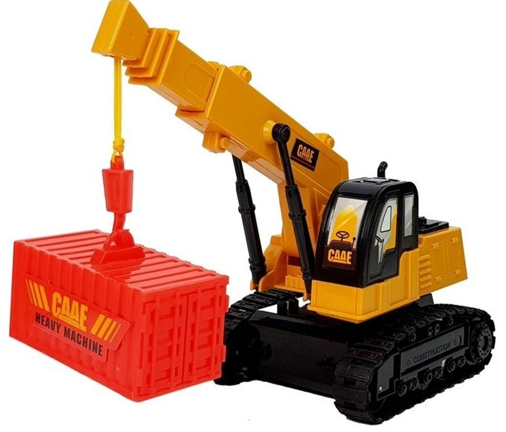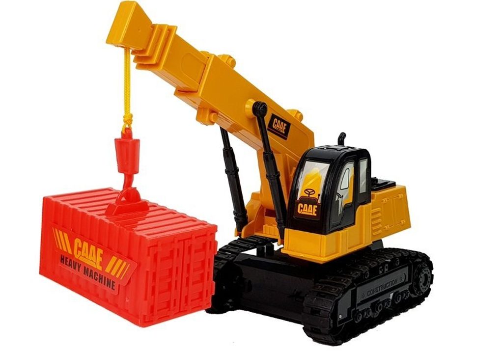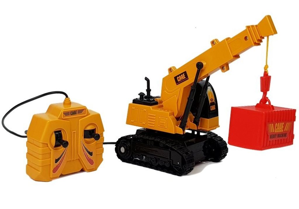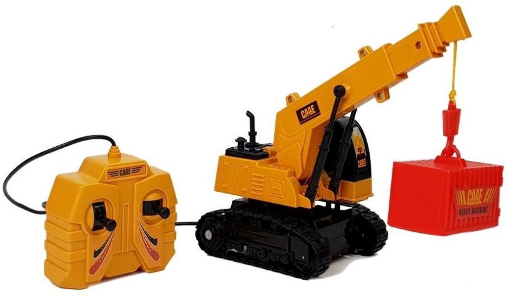 Jeřáb na dálkové ovládání s délkou ovládací šnůry 110 cm umožnuje jízdu dopředu a dozadu, má otáčecí kola doprava a doleva a zvedací rameno na který lze zavěsit imitaci kontejneru. Ovládání je velmi jednoduché, pomocí dvou joysticků se ovládá směr, jízda a pohyblivé rameno.  Dálkové ovládání  je napájeno bateriemi, které nejsou součástí balení. Jeřáb je vyroben z plastu a má certifikaci CE.