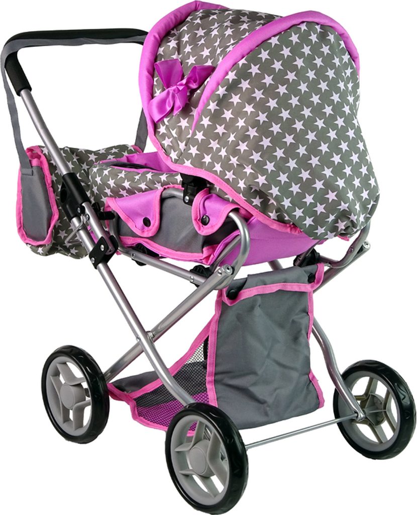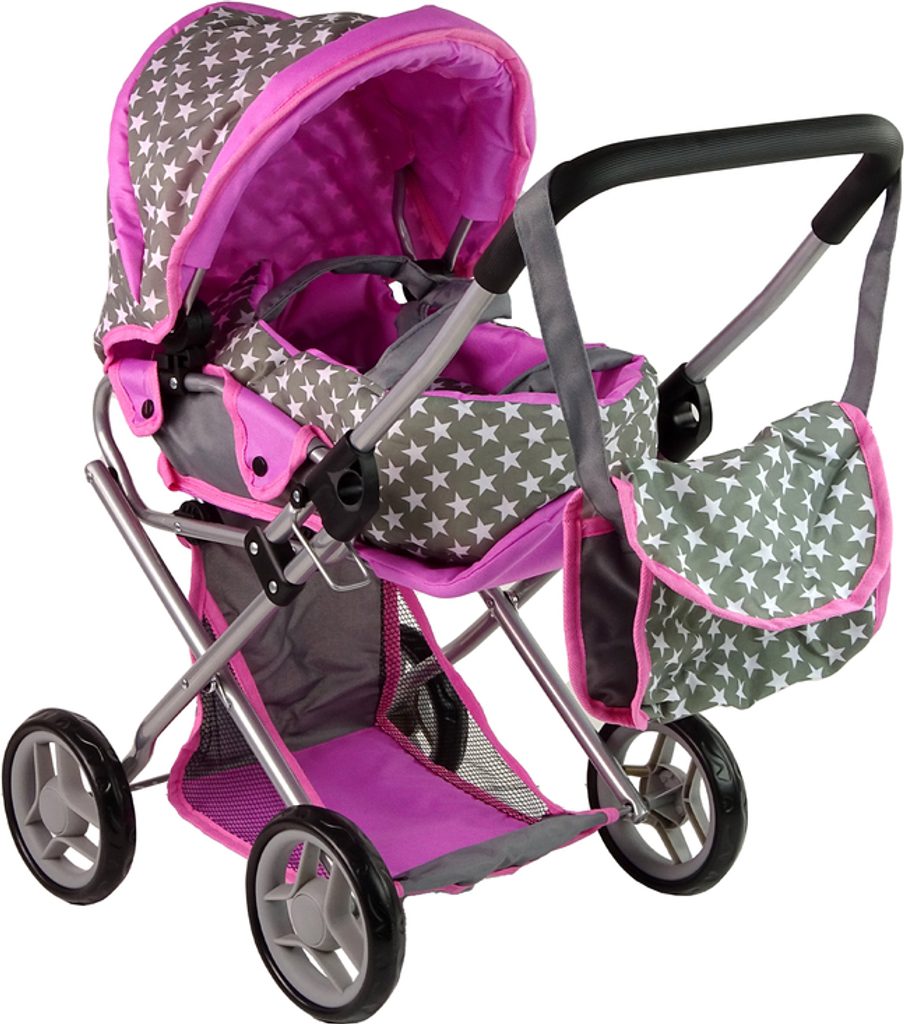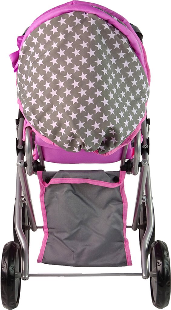Kombinovaný kočárek pro panenky Alice 9346D má velmi lehkou stabilní konstrukci vyrobenou z hliníkových trubek, svrchní část je z impregnované bavlny. Lze ji jednoduše sejmout a kdykoliv vyprat. Rukojeť kočárku je obalená pěnou. Uvnitř kočárku je nosítko s úchytkami a povlečením sloužící k přenášení panenky. Před automatickým složením chrání dítě blokace. Panenka je proti vypadnutí zabezpečena bezpečnostním pásem. Pěnová kola s disky nezanechávají šmouhy na podlaze.