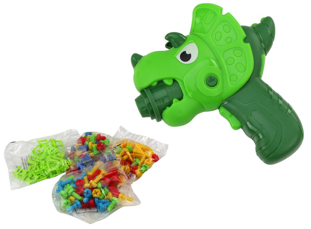 Barevná konstrukční stavebnice Dino Zone v praktickém kufříku se stolečkem a horním úchytem je ideální hračkou pro kluky i holčičky. Součástí je vrtačka na baterie ve tvaru dinosaura. Celkem je v sadě obsaženo 249 ks různých konstrukčních prvků v různých barvách, ze kterých lze šroubováním pomocí libovolně vytvářet obrazce, mozaiky, vzory a prostorové obrazce. Vše záleží jen na představivosti dítěte. Hra se stavebnicí podporuje u dětí představivost, motorické schopnosti a trpělivost. Hračka je určena pro děti od 36 měsíců věku.