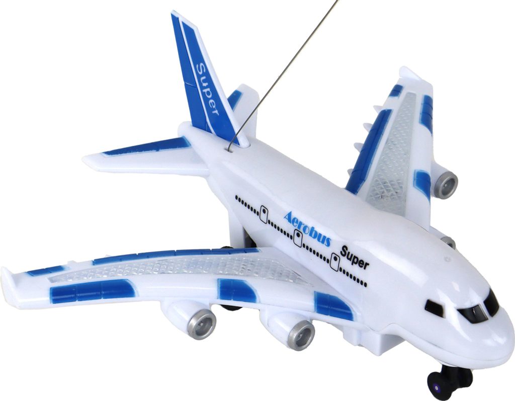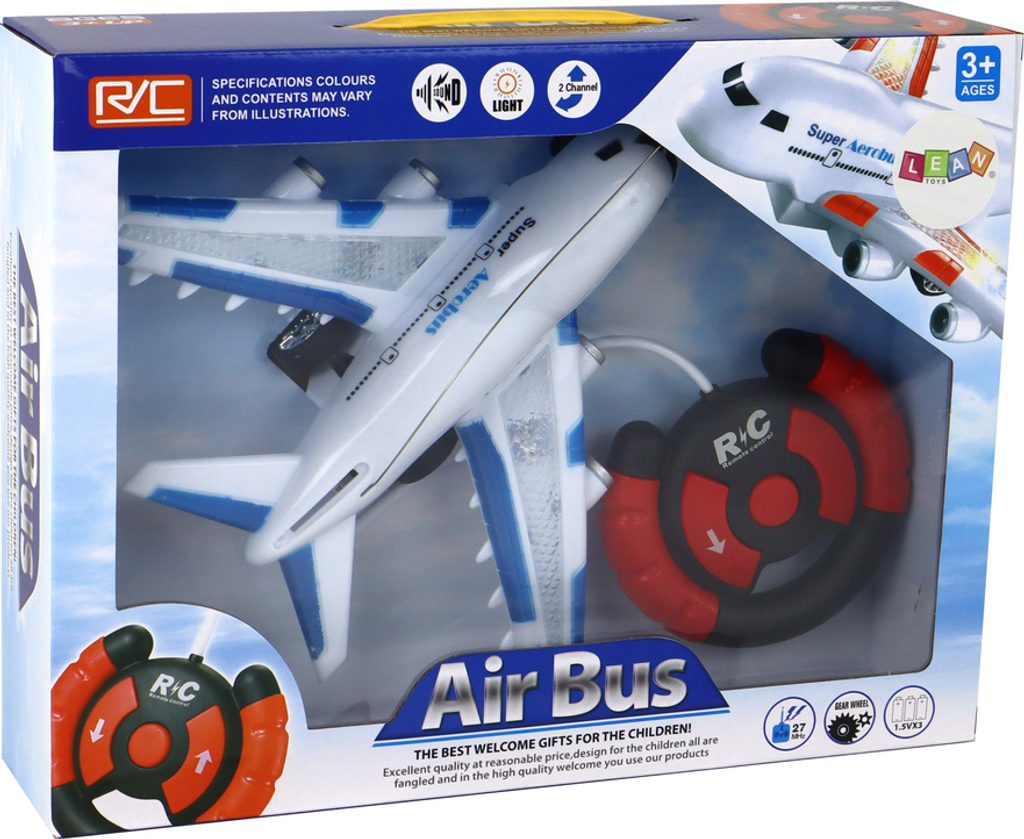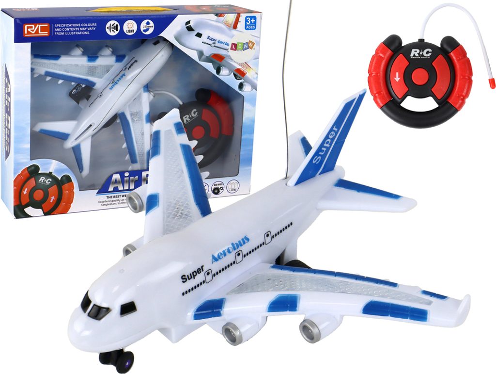 Letadlo s dálkovým ovládáním 40MGz Super Aerobus v provedení dopravního letadla umožnuje jízdu dopředu a dozadu, zatáčí doprava a doleva. Je vybaveno světelnými a zvukovýmu efekty. Součástí balení je dálkový ovladač pro změnu směru jízdy a jízdu vpřed a vzad. Ovladač je napájen bateriemi, které nejsou součástí balení. Letadlo je vyrobeno z odolného plastu a má certifikaci CE.