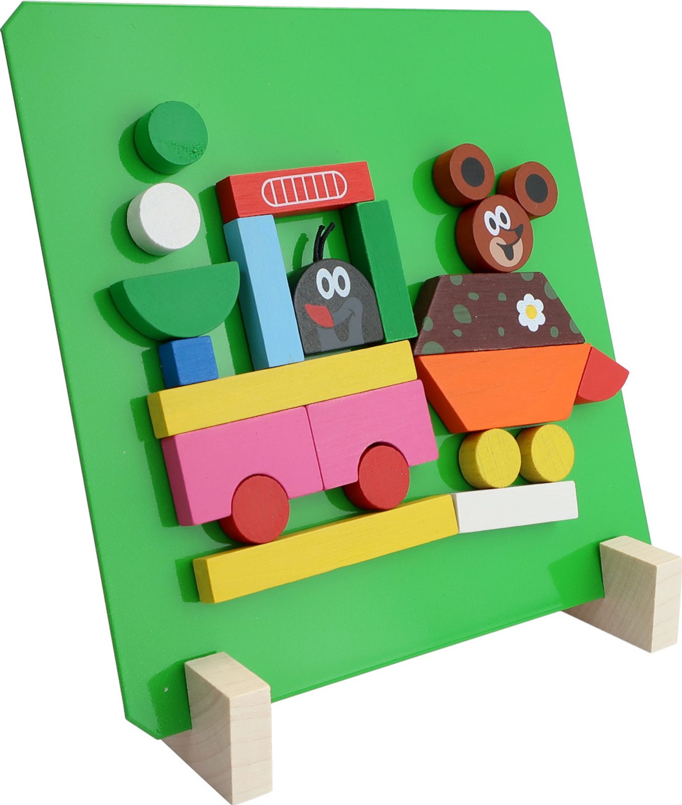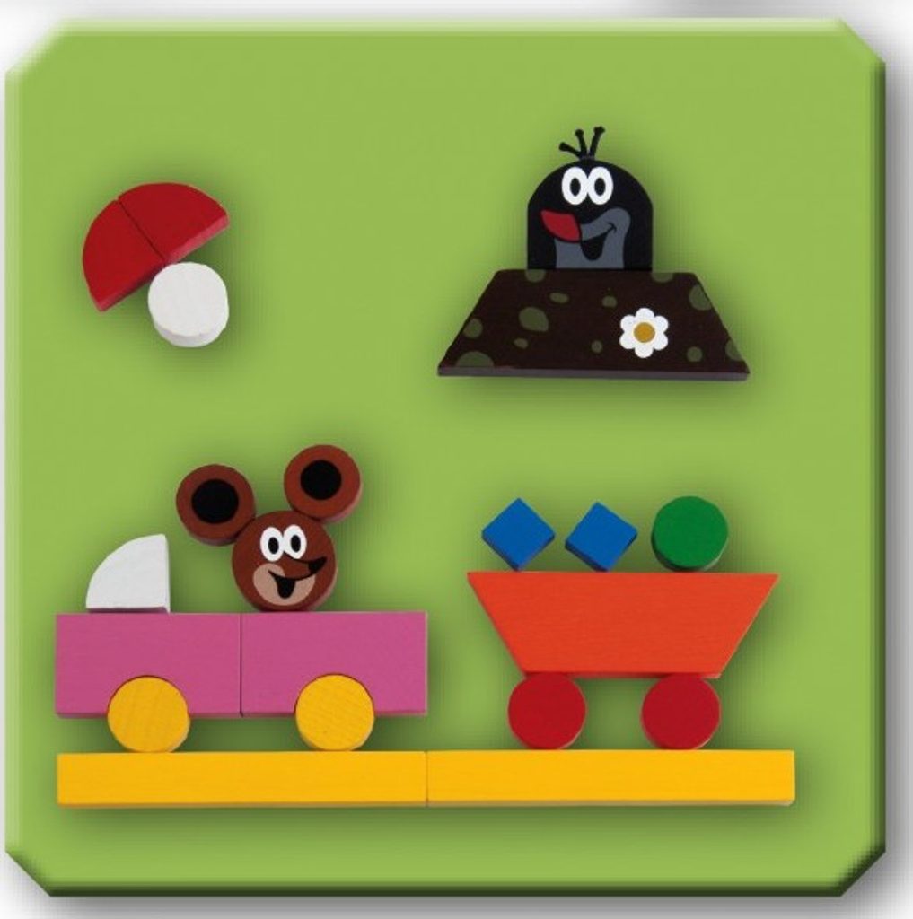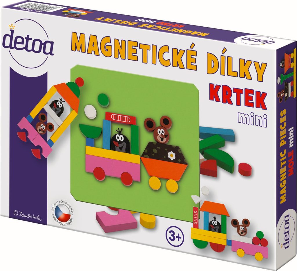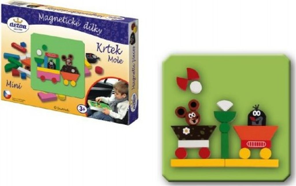 Dřevěné dílky podlepené magnetem na motivy Krtečka. Hra pomáhá rozvíjet motoriku rukou, kreativitu a fantazii dětí. Výrobek splňuje požadavky EU na bezpečnost hraček. Baleno v papírové krabici. © Zdeněk Miler