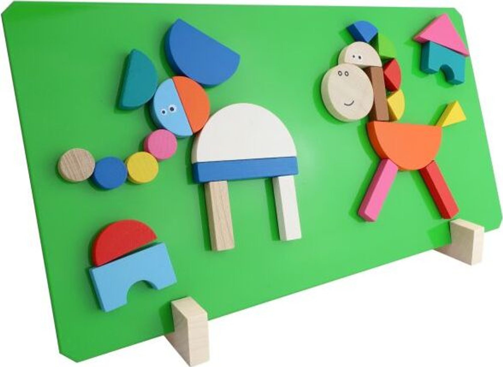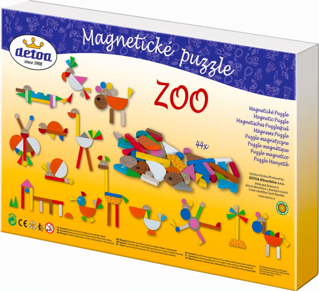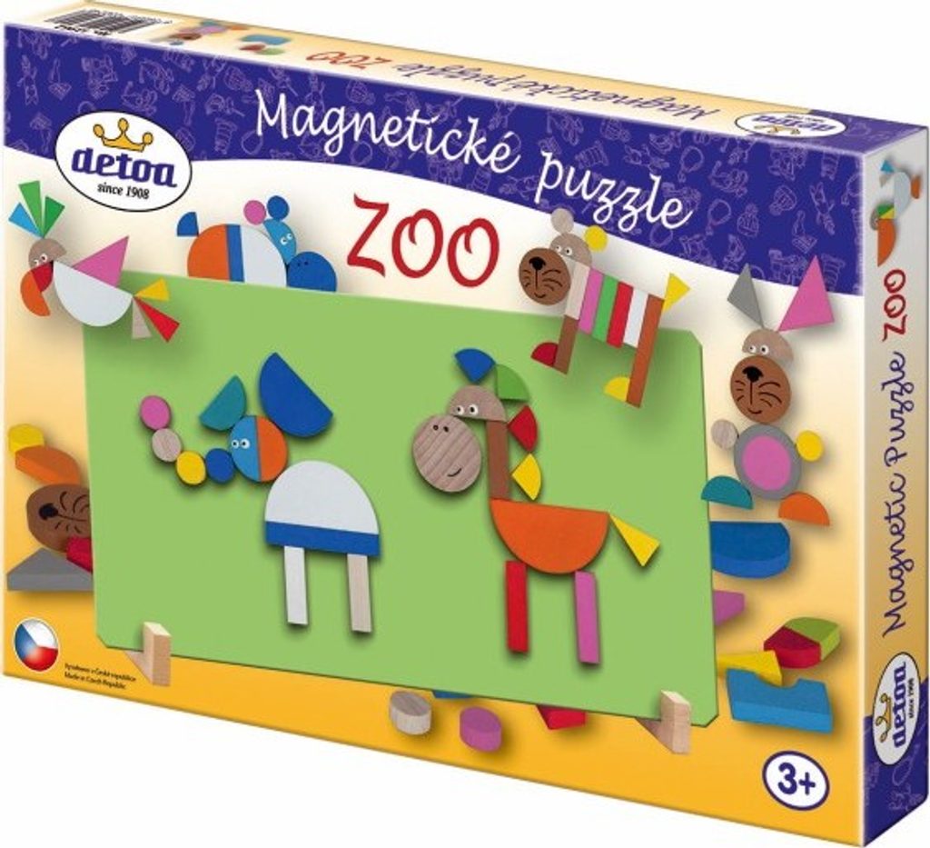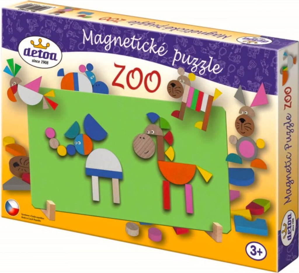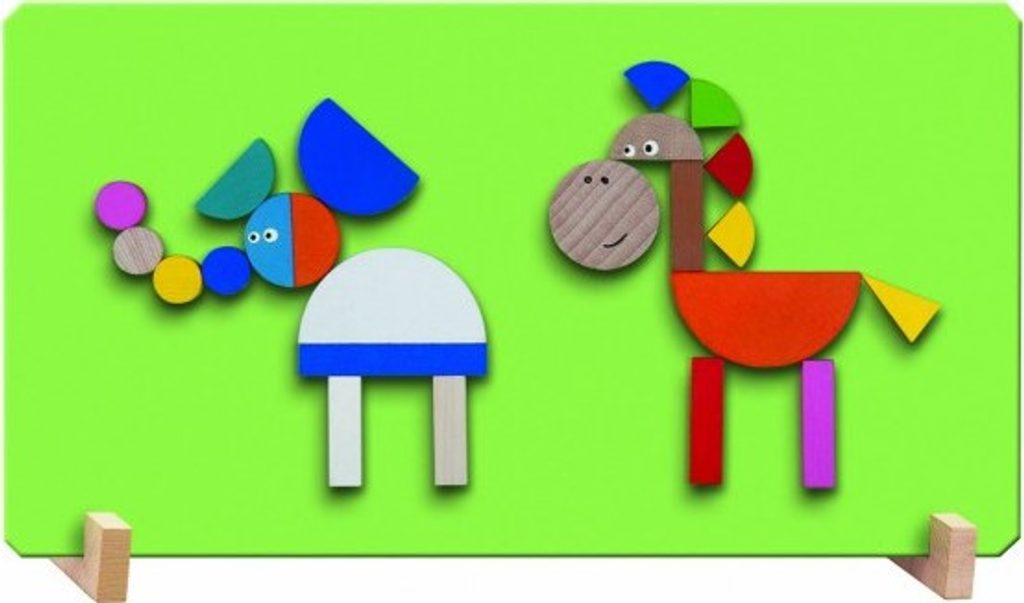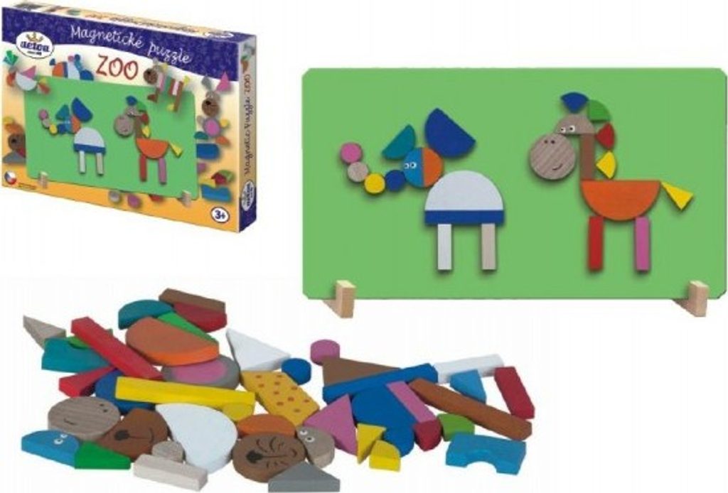 Na magnetickou tabulku si děti mohou skládat nepřeberné množství obrázků. Výborná hra pro rozvíjení představivosti, tvořivosti a prostorového myšlení. Sada obsahuje: magnetickou tabulku, stojánek a 41 dřevěných dílků s magnetem.