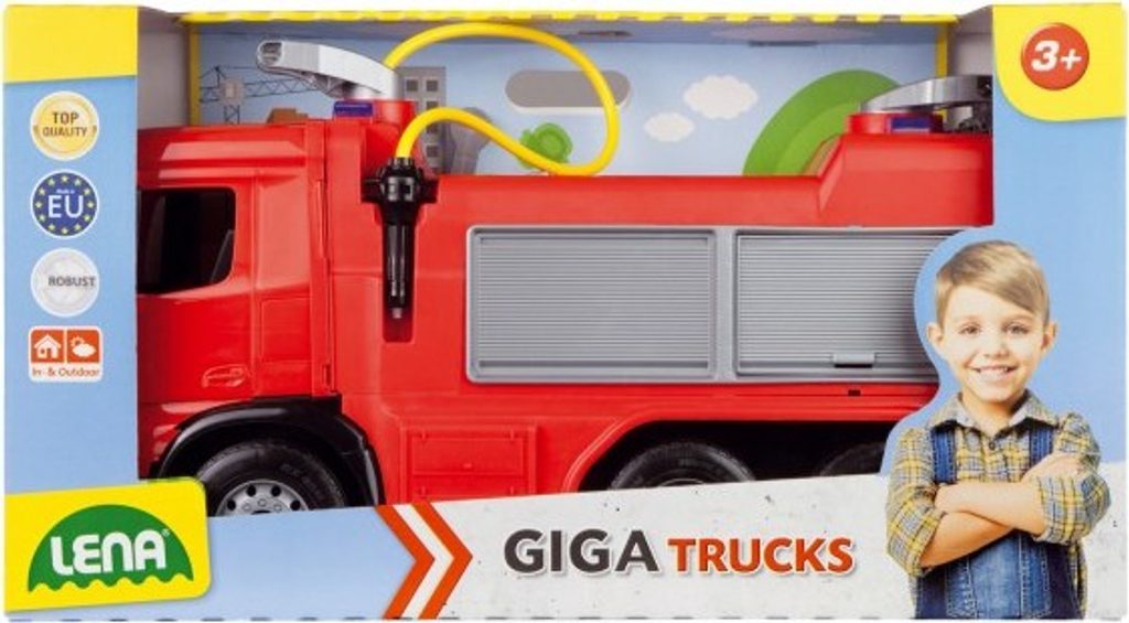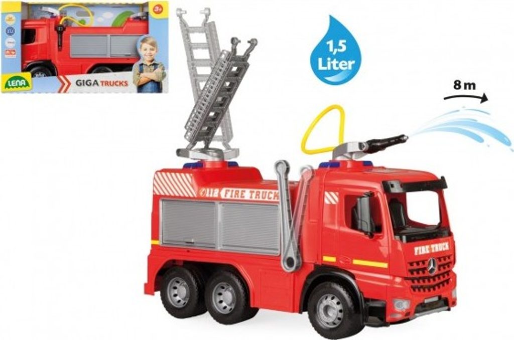 Mercedes požární auto s plně funkčním vodním dělem, velikost nádržky na vodu 1,5 litru, dostřik vody až 8 metrů, výsuvný žebřík s možností upevnění stříkačky. Maximální nosnost auta je až 50 kg. Auto vhodné pro vnitřní, ale i venkovní užití.