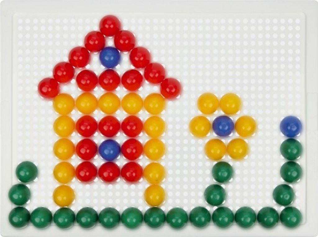 Skládejte barevné kloboučky na podkladovou desku. balení obsahuje 80 ks kloboučků a pytlíček na uložení. Předlohu najdete na zadní straně krabice. Průměr hlavičky kloboučku: 1,5 cm Rozměr podkladové desky: 21 x 16 cm.