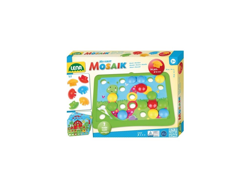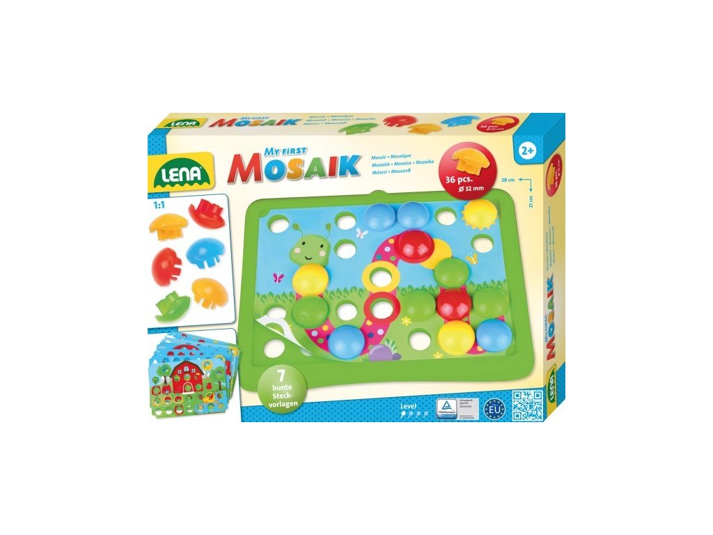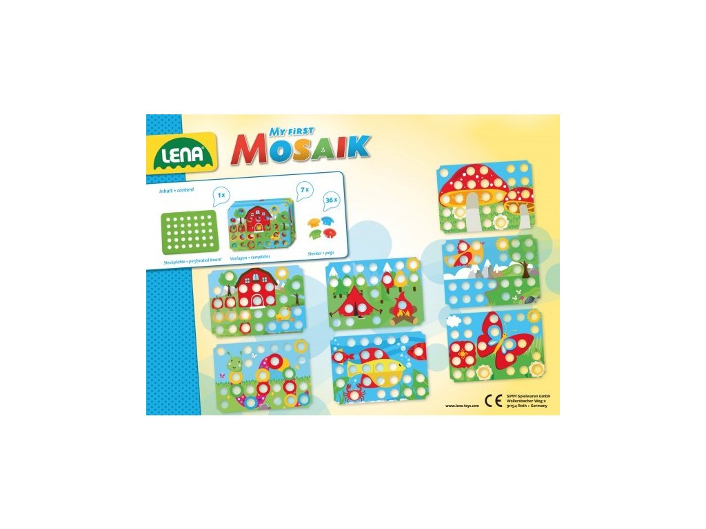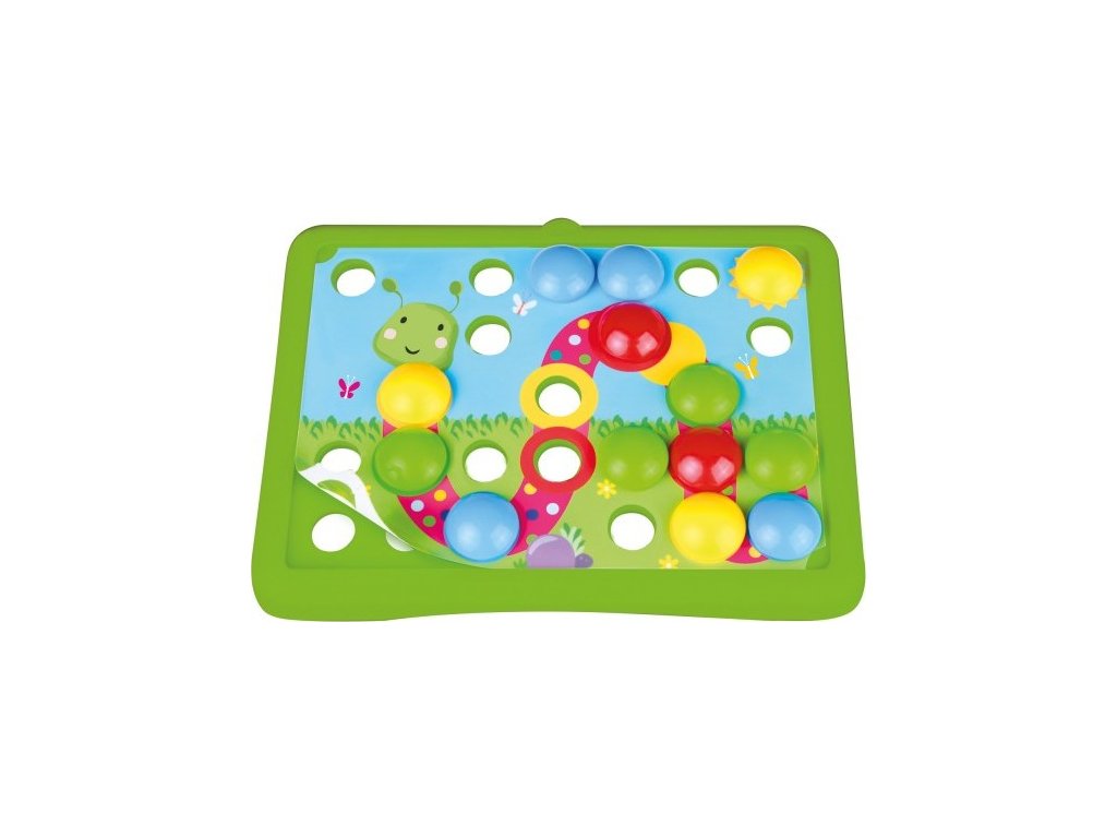Mozaika pro nejmenší, velikost kolíčku 33 mm, průměr hlavy 20 mm, 36 kolíčků a 7 barevných šablon (předloha k umisťování kolíčků). Barevné kloboučky, které se skádají na podkladovou desku s předtišněným motivem, dokážou vytvořit nádherné obrázky. Díky velkým dírám a količkům nebudou mít ani ti nejmenší problém s umisťováním.Doplňkové parametry