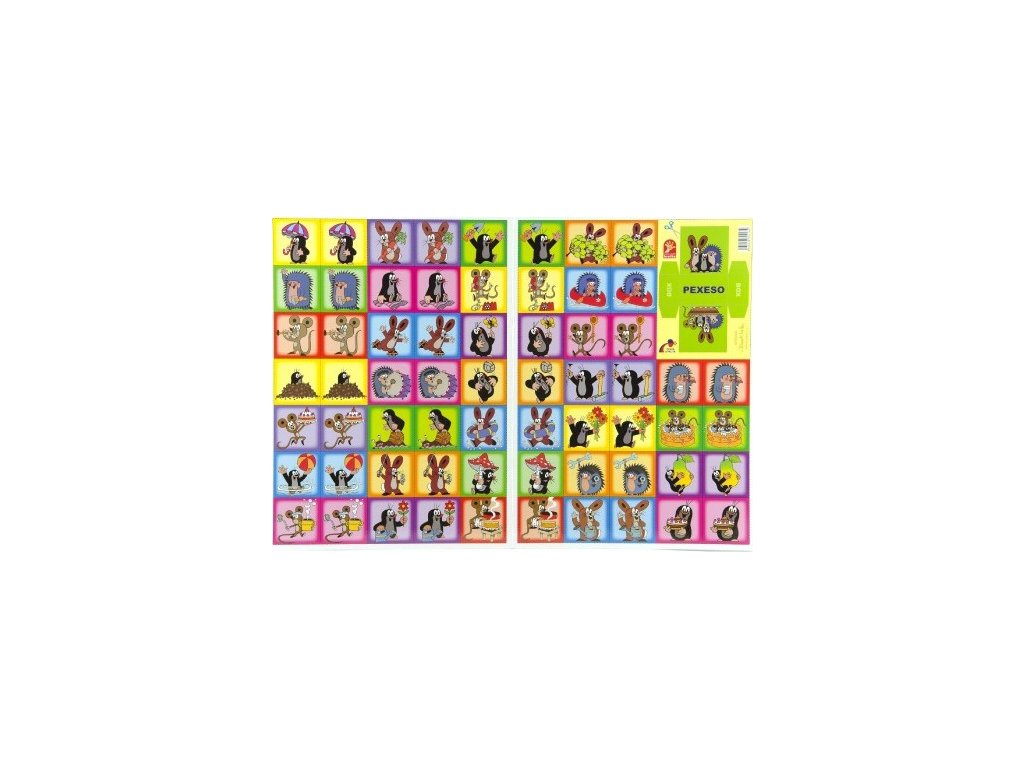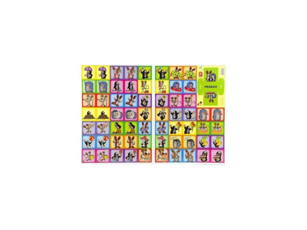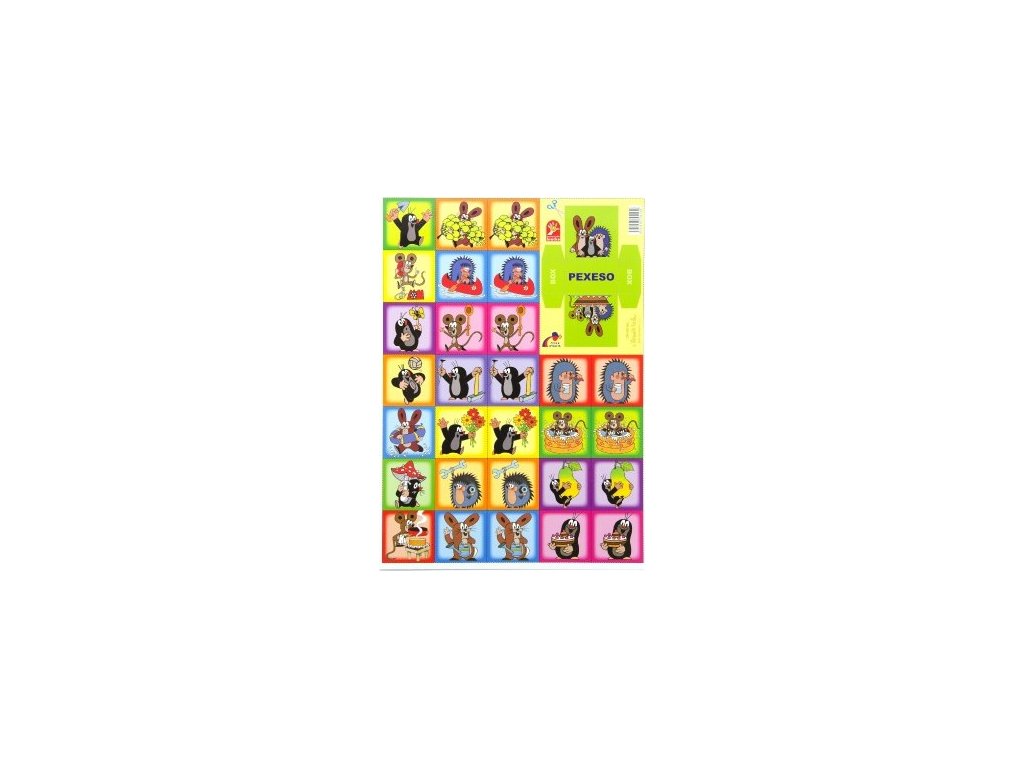 Pexeso s motevm Krtka a jeho kamarádů. Pravidla hry: Hra se po rozstříhání skládá z 32 obrázkových dvojic. Principem hry je vyhledávání dvojic. Karty jsou při hře otočeny obrázkem dolů a obracejí se po dvou. Je nutné zapamatovat si náměty obrázků a místo, na kterém leží.Doplňkové parametry