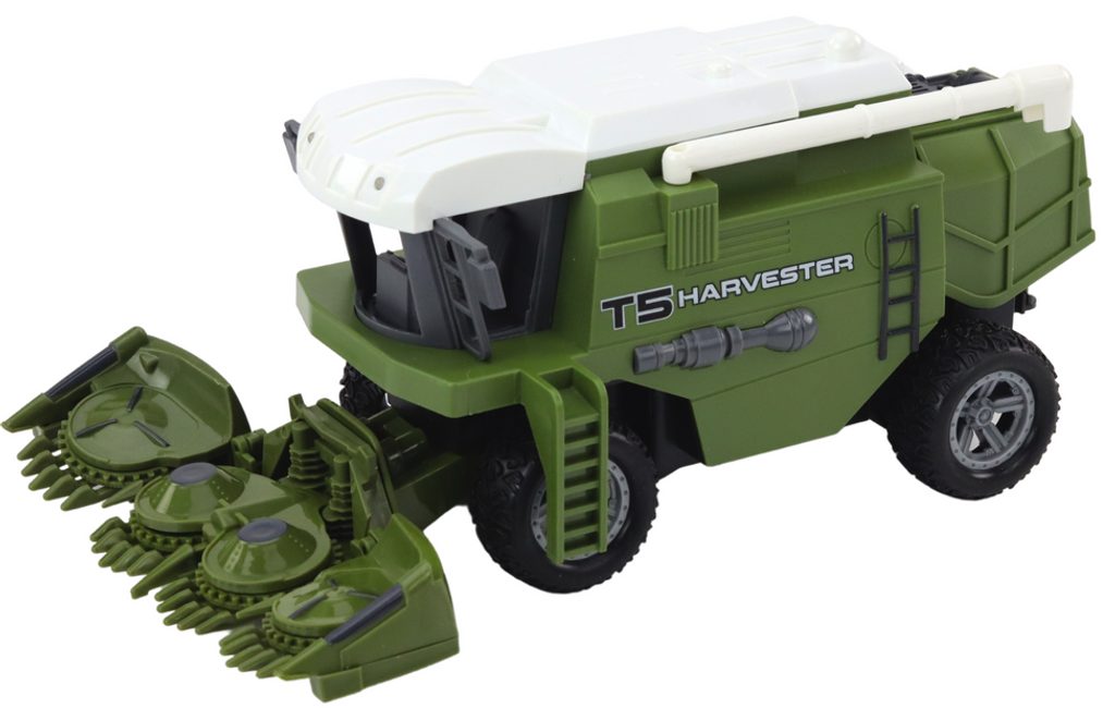 Kombajn T5 Farm s dálkovým ovládáním 2,4GHz je dokonalou imitací skutečného kombajnu. Umožnuje jízdu dopředu a dozadu, zatáčí doprava a doleva. Během jízdy blikyjí světýlka. Součástí balení je dálkový ovladač který je napájen bateriemi, které nejsou součástí balení. Samotný kombajn je napájen akumulátorem, který se nabíjí přiloženou USB nabíječkou. Kombajn je vyroben z plastu a má certifikaci CE.