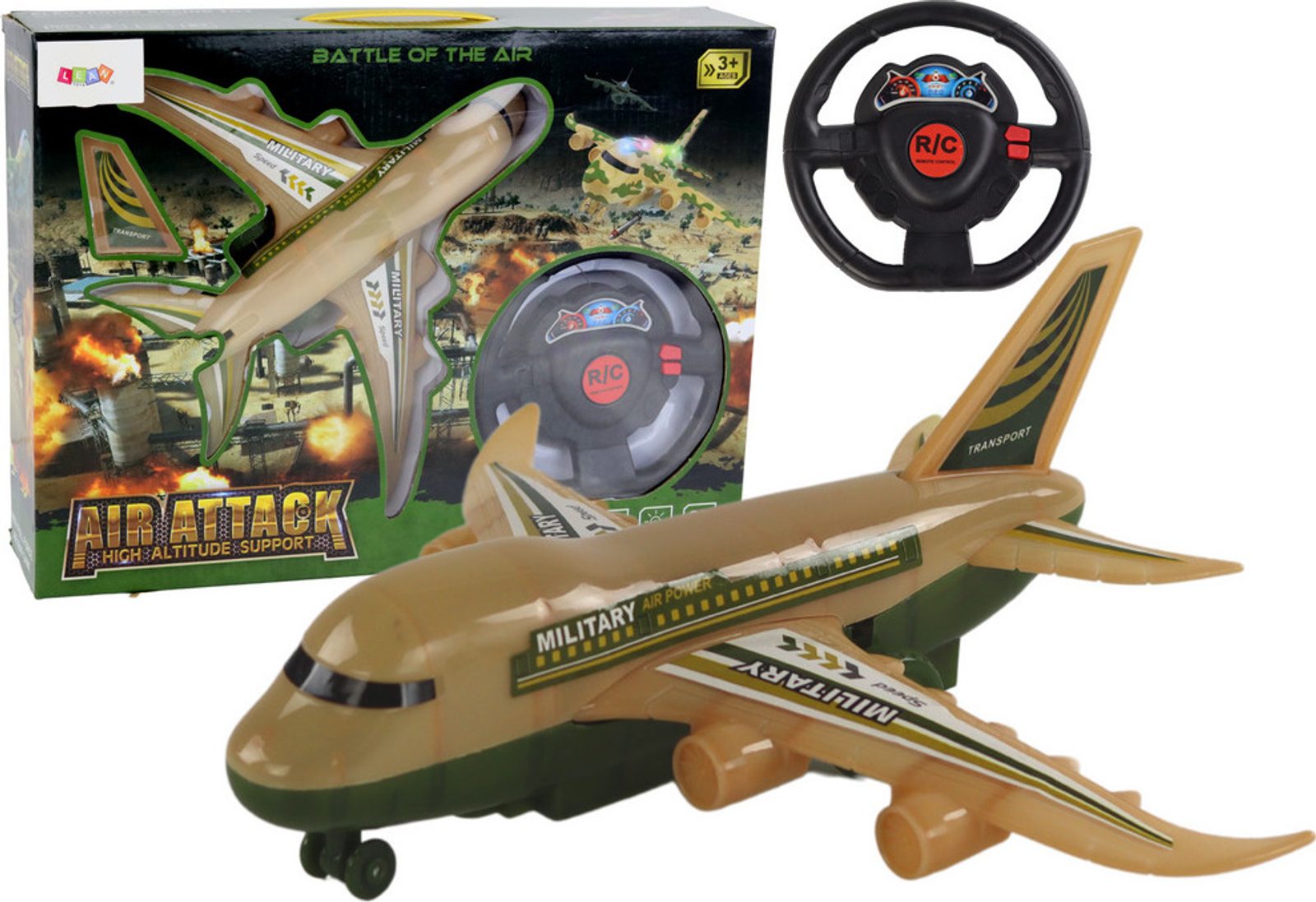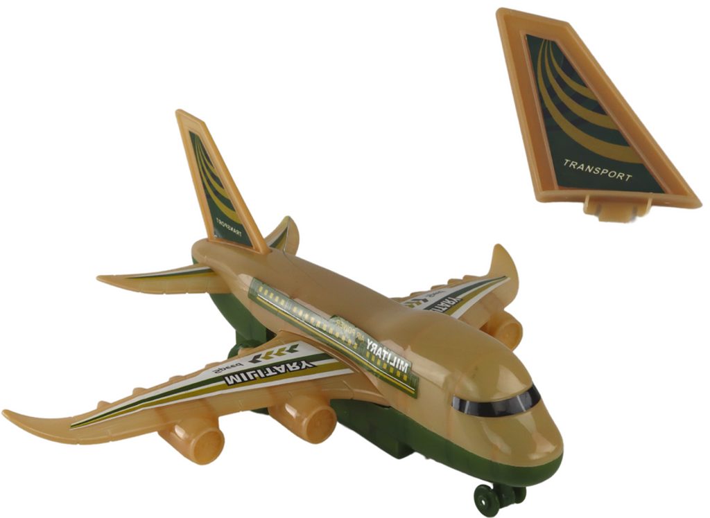 Letadlo s dálkovým ovládáním 27 MGz Military Aircraft v provedení vojenského dopravního letadla umožnuje jízdu dopředu a dozadu, zatáčí doprava a doleva. Součástí balení je dálkový ovladač pro změnu směru jízdy a jízdu vpřed a vzad. Ovladač je napájen bateriemi, které nejsou součástí balení. Letadlo je vyrobeno z odolného plastu a má certifikaci CE.