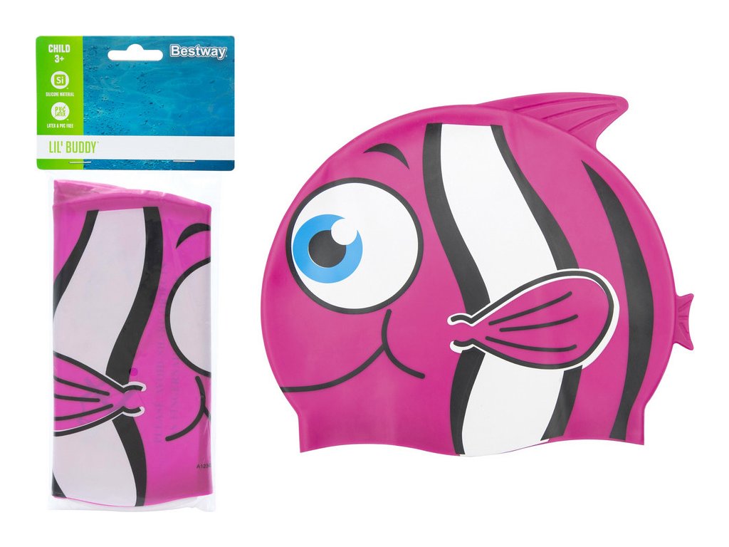 Tato plavecká čepice vyrobená z odolného silikonu dokonale padne a ochrání vaše vlasy a uši při plavání. Její jedinečný design ve tvaru usmívající se růžové rybky s vyčnívajícími ploutvemi a ocasem jistě potěší ty nejmenší. Čepice má univerzální velikost, což znamená, že se hodí na různé dětské hlavy. Balení má rozměry 27 cm x 10 cm x 1 cm, takže se snadno skladuje a přepravuje.