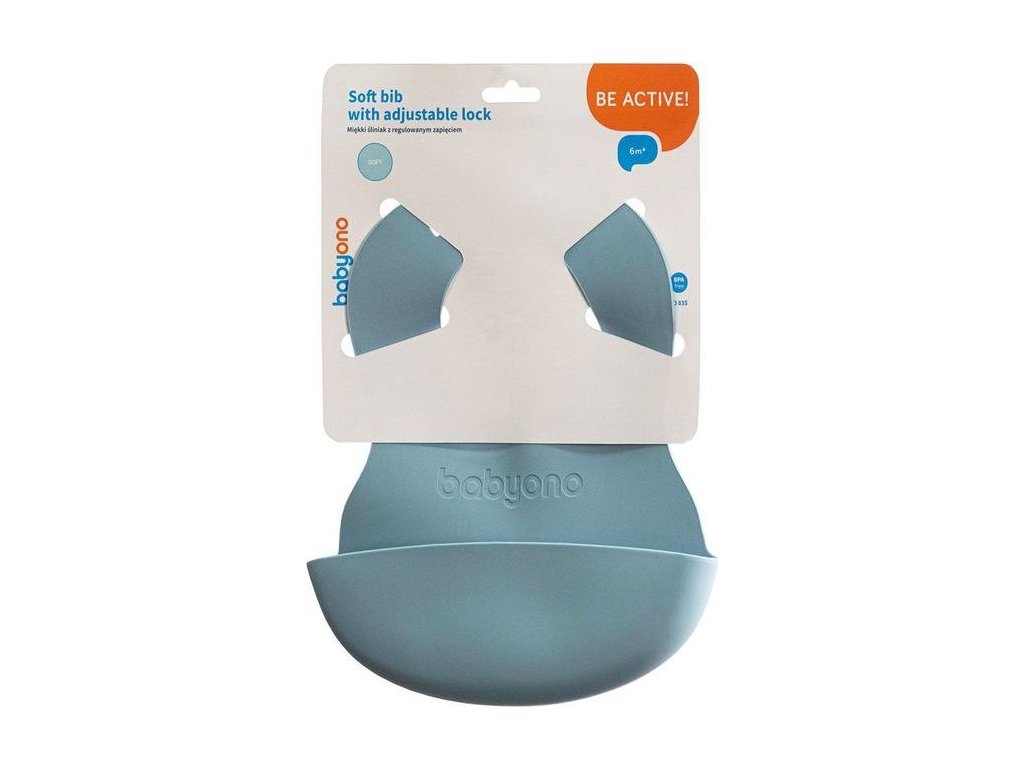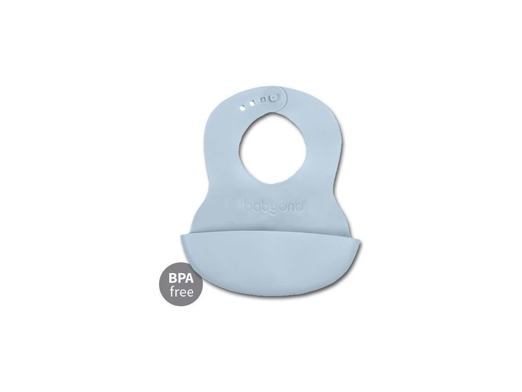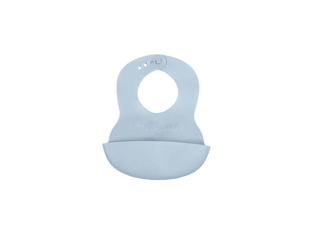 Silikonový bryndák s kapsou a nastavitelným zapínáním - modrý