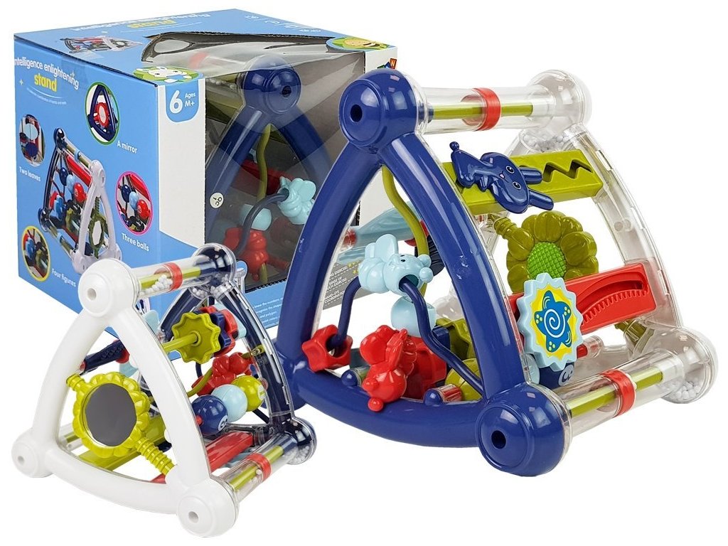 Colourful Educational Cube Rattle Shapes Mirror for Baby White and Blue