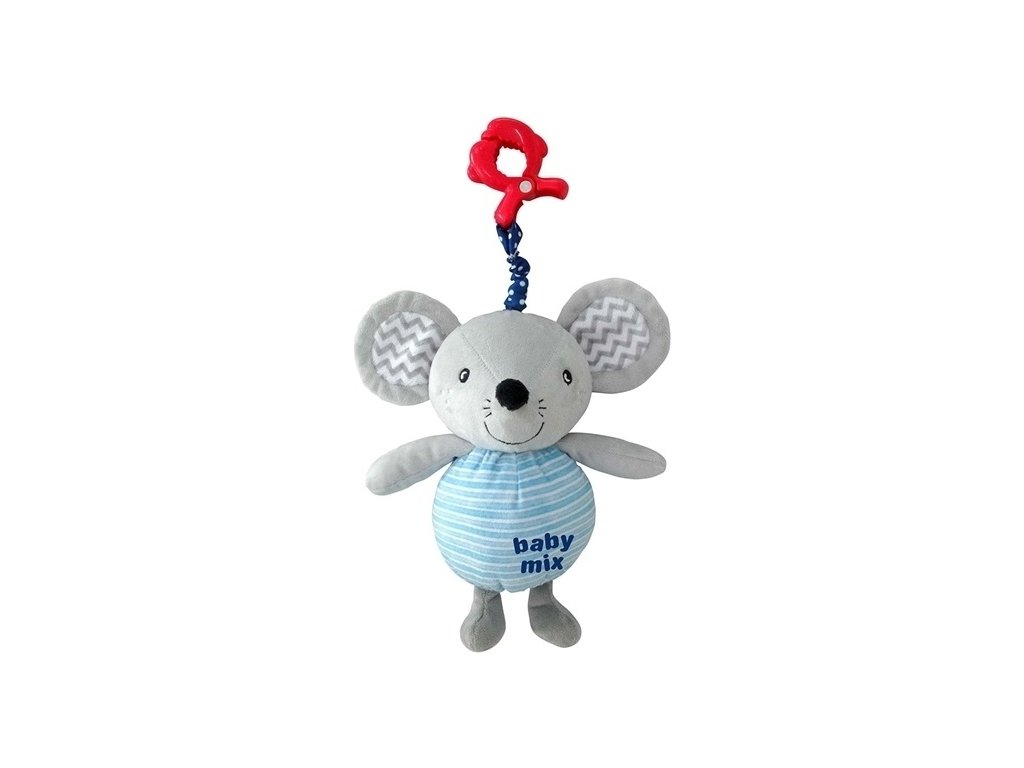 Dětská plyšová hračka s hracím strojkem a klipem Myška šedá