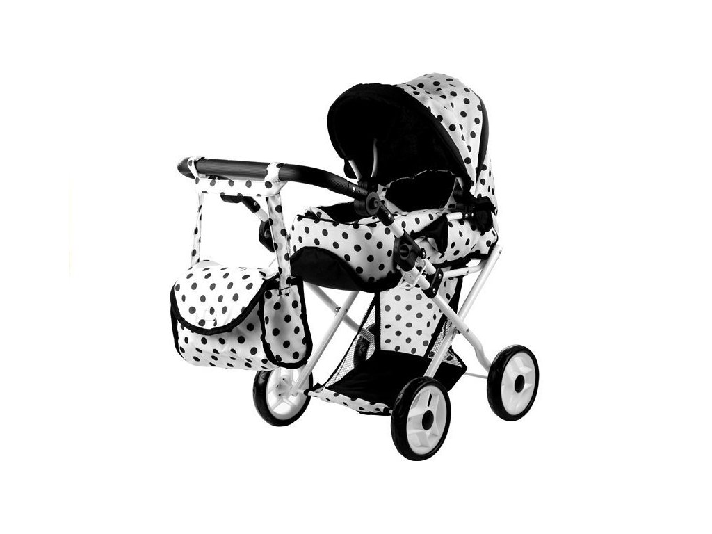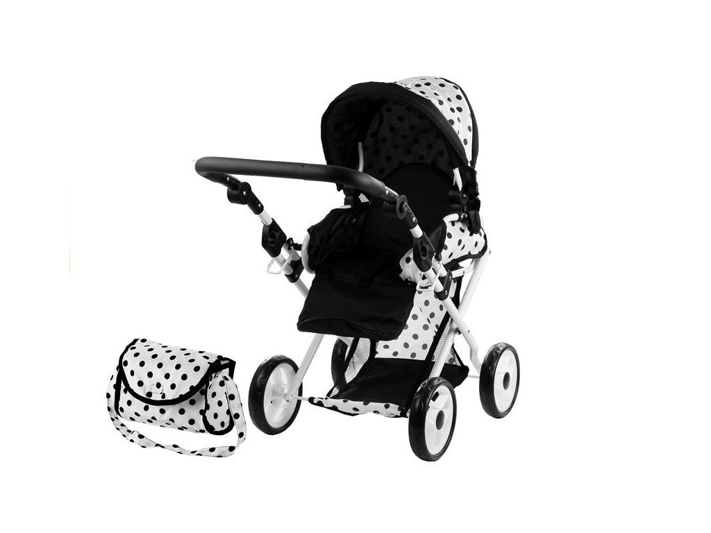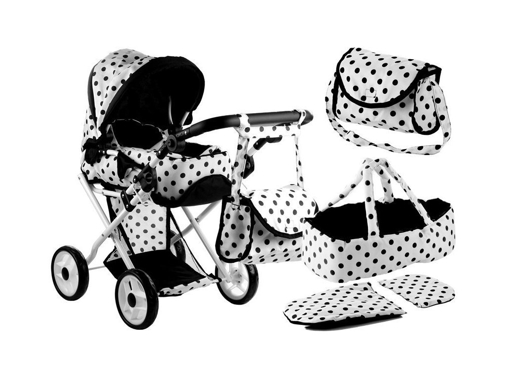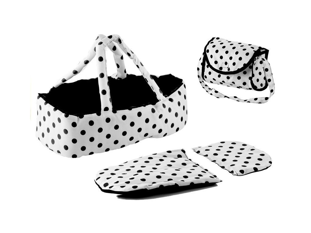 Doll Bogie and Stroller Alice- with Carrier, Bag and Bedding White with Black Dots