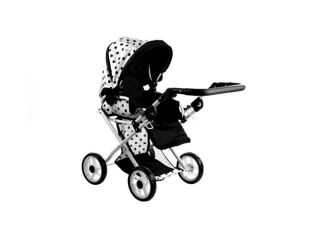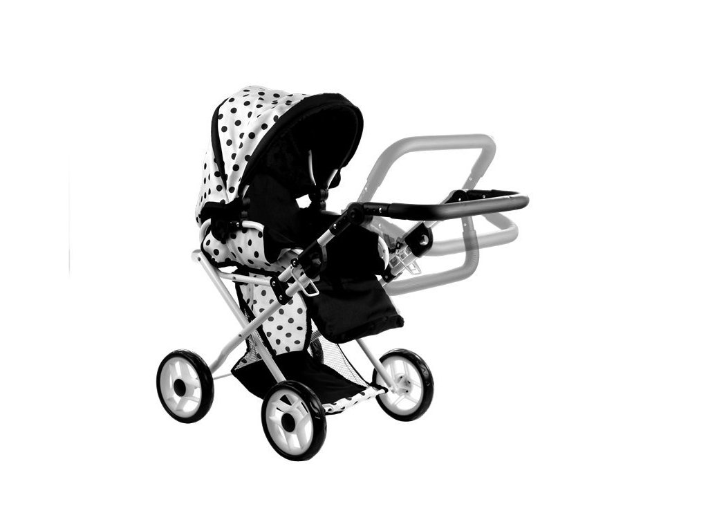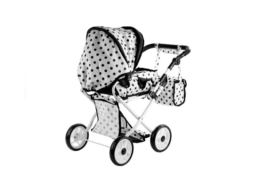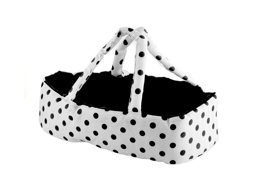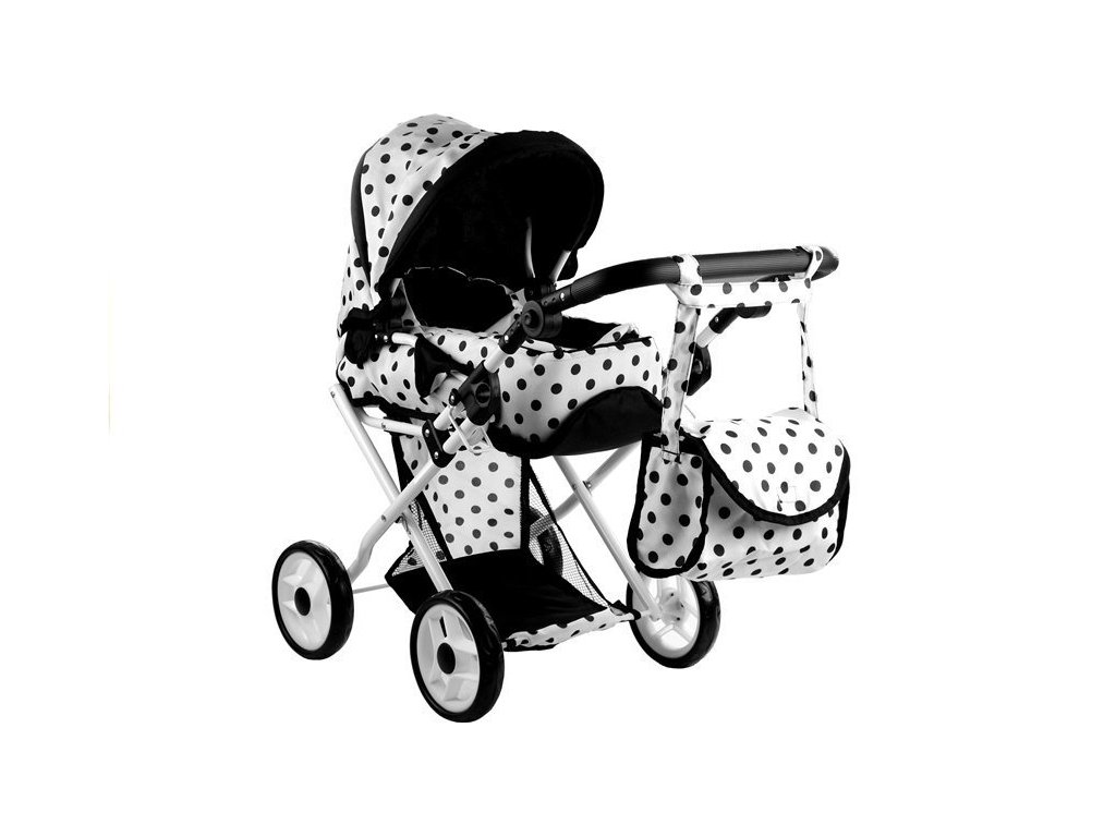 Doll Bogie and Stroller Alice- with Carrier, Bag and Bedding White with Black Dots