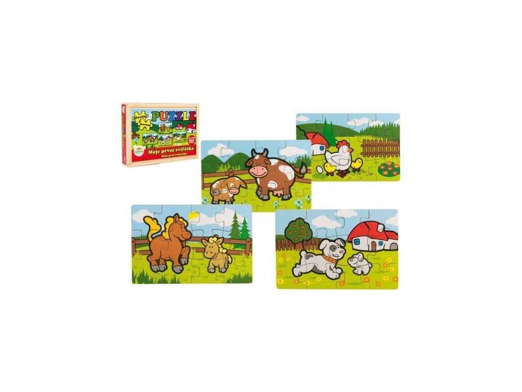 Dřevěné Puzzle - Moje první zvířátka 4x12 dílků