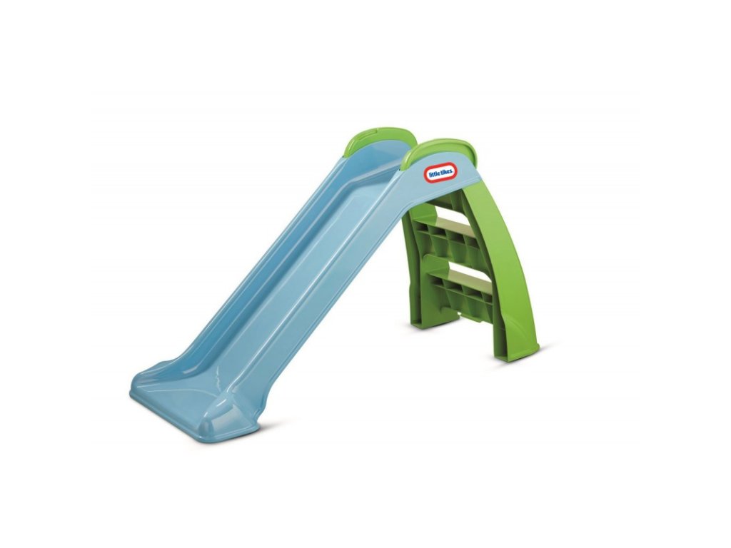 120 cm dlouhá skluzavka je vybavena širokými schody se základnou zajišťující stabilitu. Skluzavku lze pro pohodlné uložení sklopit.