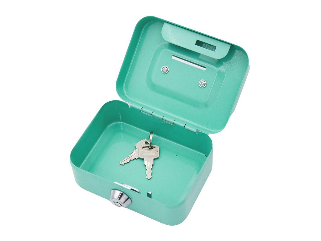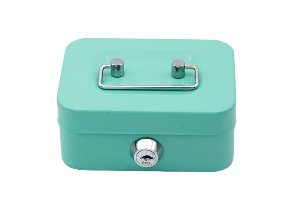 Piggy Bank Storage Box, Lockable, Two Keys, Metal, Turquoise