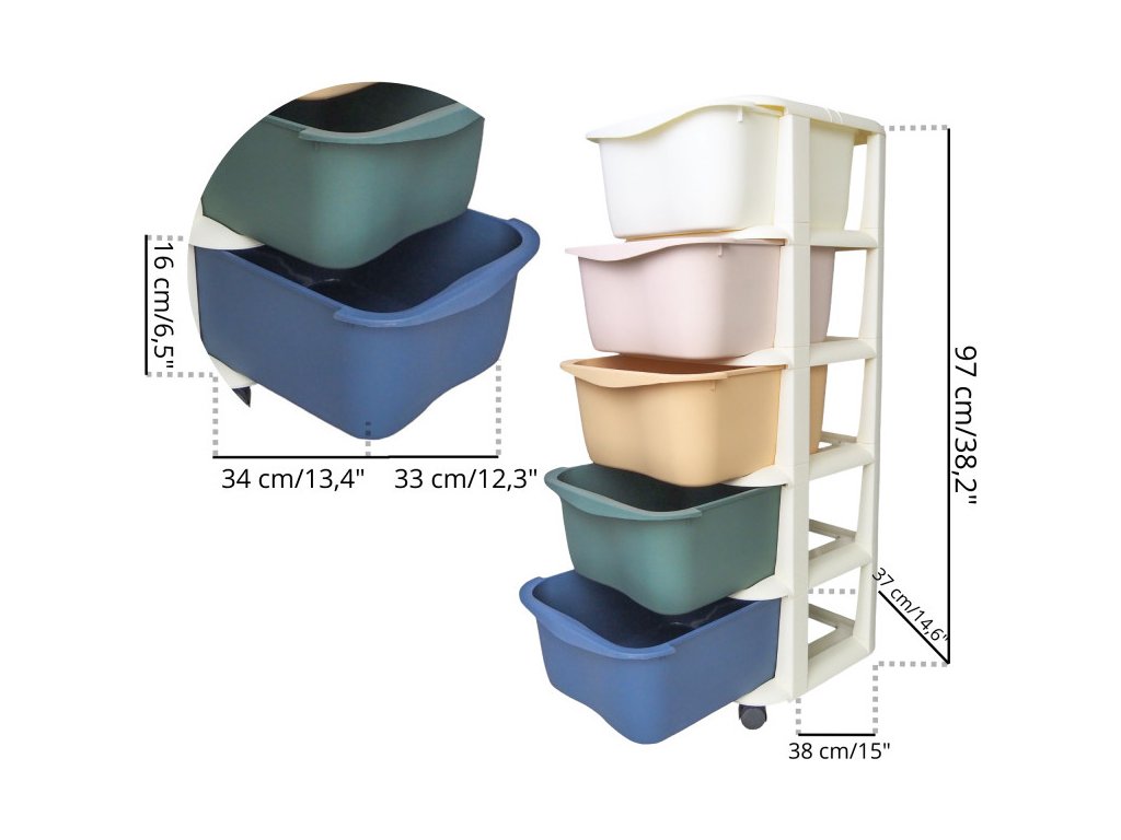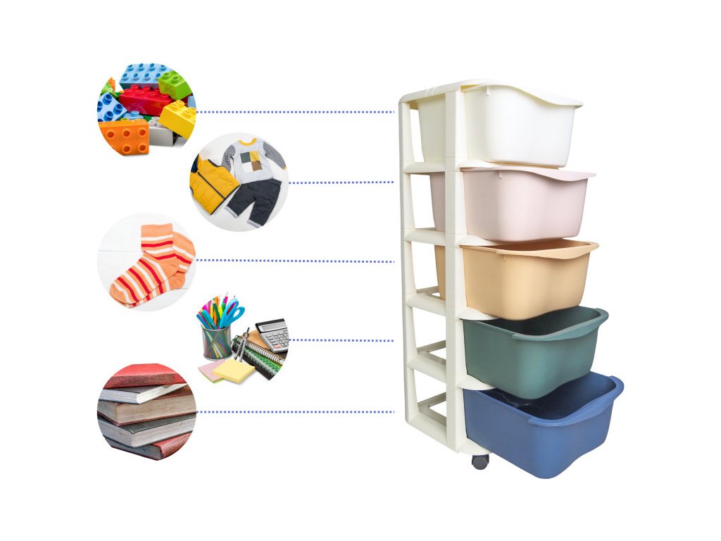 Plastikowy regał na kółkach dla dzieci szafka z szufladami