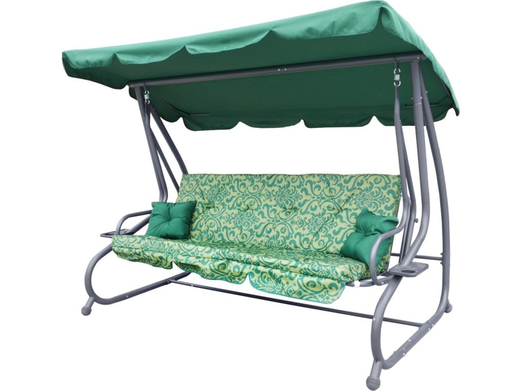 Rodzinna Huśtawka ogrodowa z Daszkiem Zielony wzór + Tekstylina 2x1 + Regulowane siedzisko + Materac + 2 Podstawki na napoje