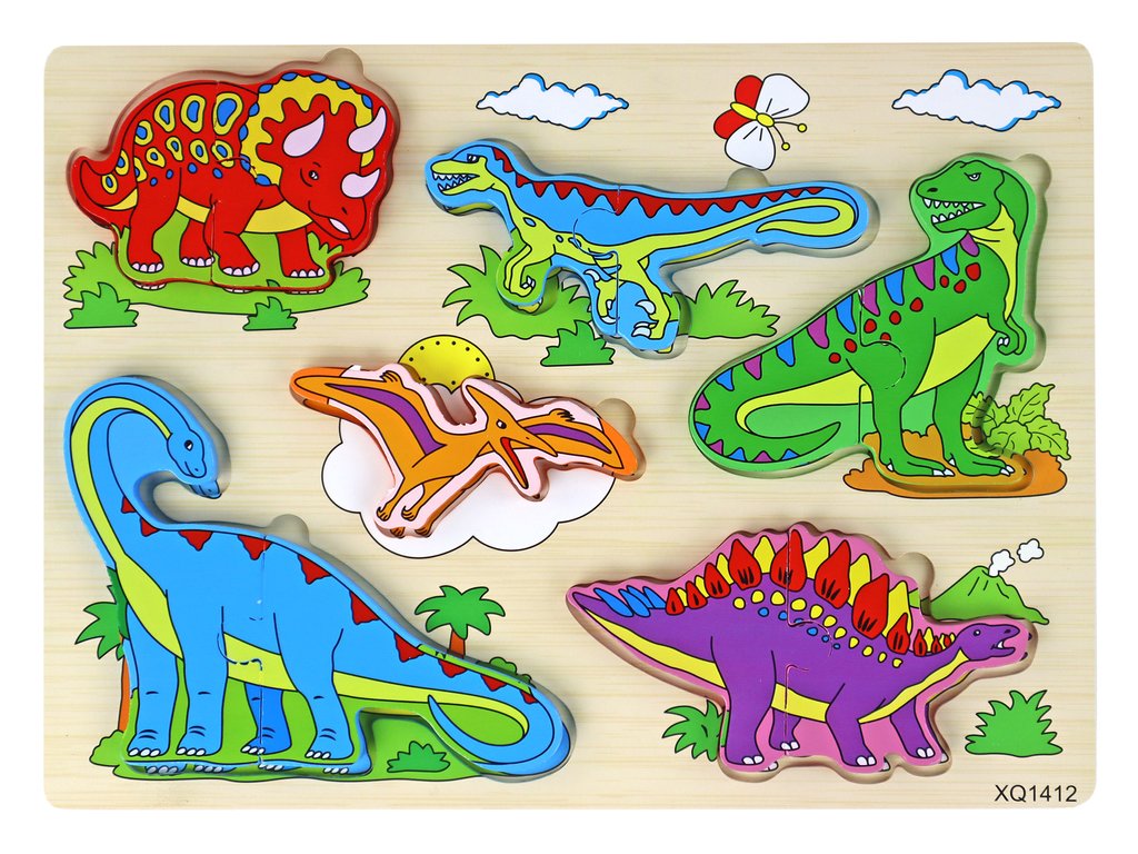 Wooden 3D Puzzle For Children Logic Game Dinosaurs Jigsaw 11 Pieces.