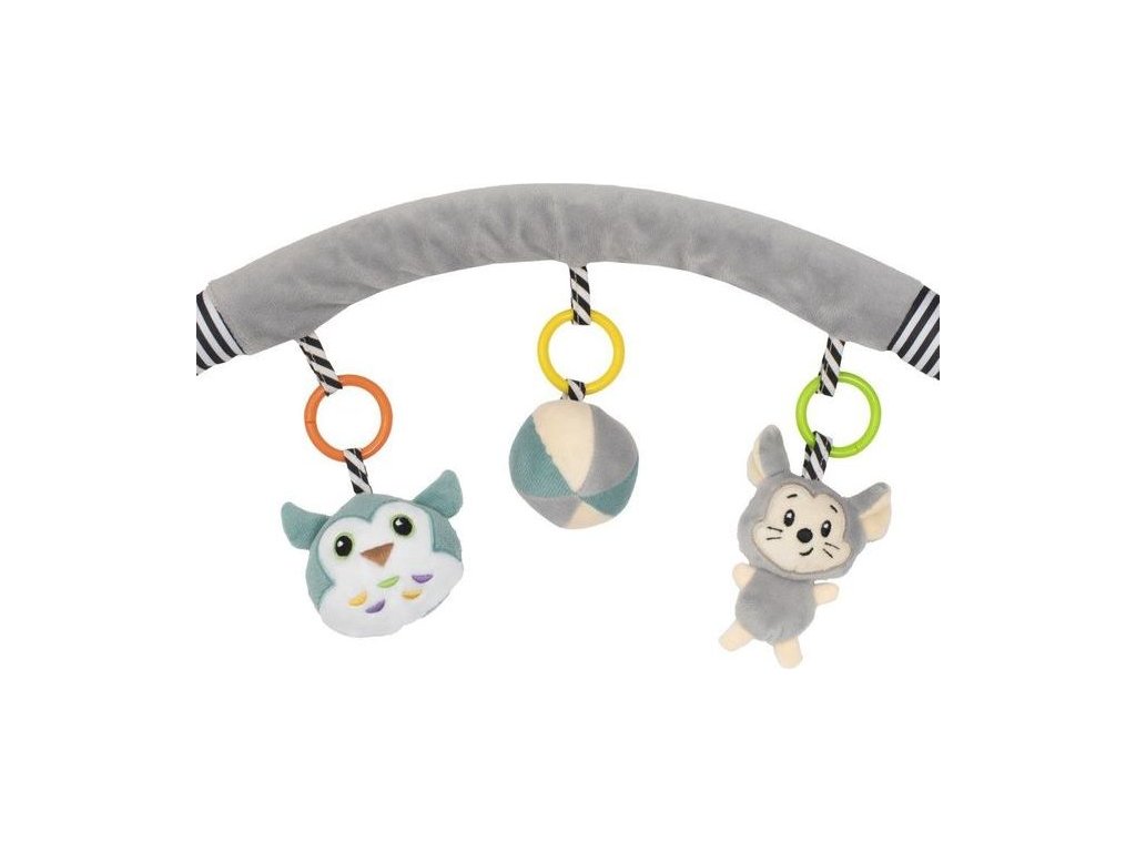 Závěsná hrazdička s hračkami do kočárku - myška + sovička