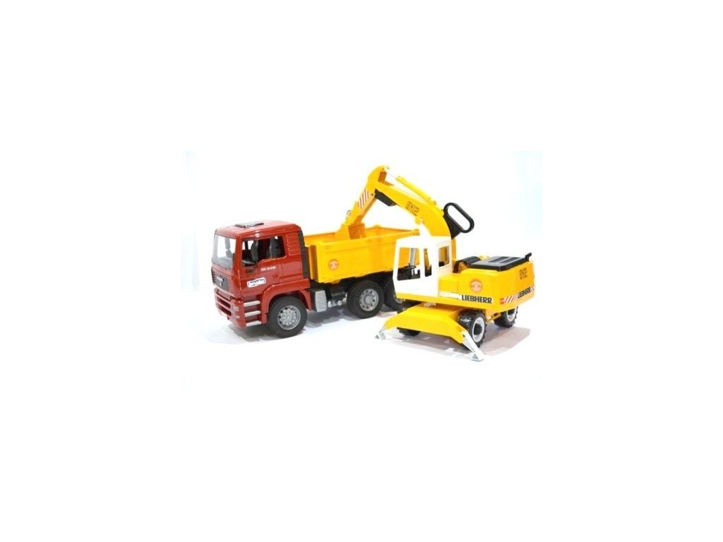 Sklápěč MAN TGA Bruder 02751 + bagr LIEBHERR