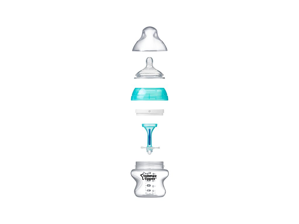 Kojenecká láhev Tommee Tippee ANTI-COLIC Advanced nabízí nejúčinnější řešení pro miminka se sklonem k břišním kolikám Patentovaný antikolikový ventil zajišťuje dokonalý odvod vzduchu během krmení a umožňuje dítěti zcela plynulé sání bez polykání vzduchu Unikátní silikonová savička věrně napodobuje mateřský prs při kojení a tím umožňuje maminkám snadné a bezpečné kombinování kojení a krmení z lahve Funkce kontroly teploty mléka uvnitř lahvičky varuje rodiče v případě, že je tekutina teplejší než doporučených 37°C Pro snadné čištění je součástí lahvičky i úzký dlouhý kartáček pro čištění trubičky ventilu Náhradní silikonové savičky k těmto lahvičkám nesou rovněž označení Anti-Colic Lahvičky jsou vhodné od narození Neobsahují bisfenol A.Doplňkové parametry