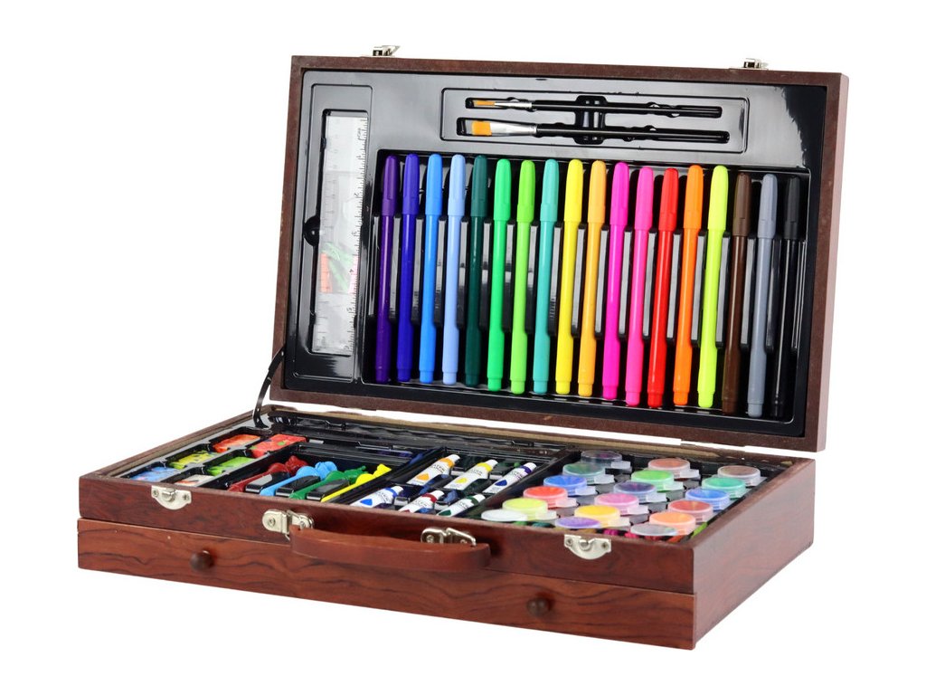Vítejte ve světě neomezené kreativity s naším uměleckým dřevěným kufrem! Jedná se o mimořádnou sadu, která vás vezme na fascinující cestu světem umění. Kufr vyrobený z elegantního dřeva je nejen praktickou pomůckou, ale také kouzelnou krabičkou, která v sobě ukrývá celou škálu uměleckých možností.
