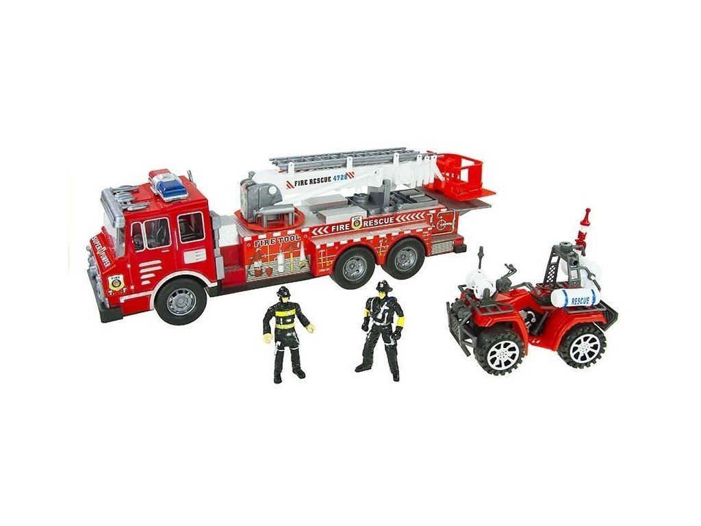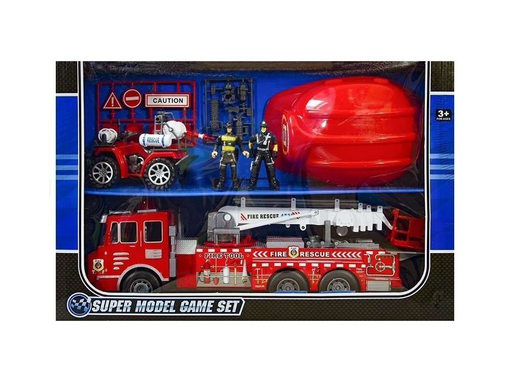 Opravdový hasič by byl na takovou sadu hrdý. Super velké hasičské auto s výsuvným žebříkem, připravené k záchranným akcím. Navíc sada obsahuje čtyřkolku a 2 figurky hasičů. Helma je pro mladého hasiče nutností.