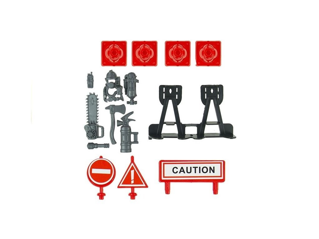 - Sada záchranných prvků pro hasiče: pila, sekera, hasicí přístroj