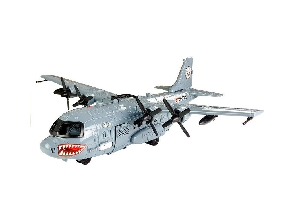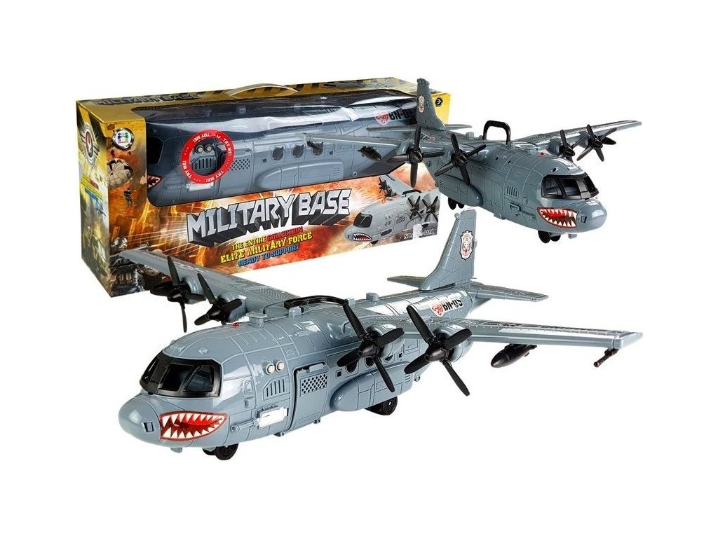 Sada z vojenské řady je vyrobena z certifikovaného, pevného materiálu, kterým je plast. Barvy letadla v šedém odstínu dokonale odkazují na vojenské barvy, díky čemuž hračka působí velmi reálně. Letoun se vyznačuje velmi velkými rozměry - rozpětí křídel je až 64 cm a délka - 55 cm. Konstrukce letadla zahrnuje pohyblivé části. Vrtule na křídlech letadla se otáčejí. V boční části letadla jsou dvě tlačítka, která po stisknutí aktivují světelné a zvukové efektydělat hru ještě zábavnější!