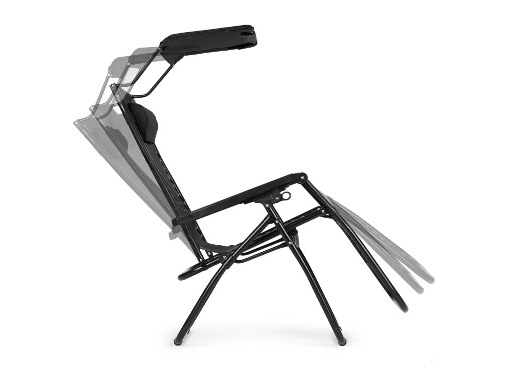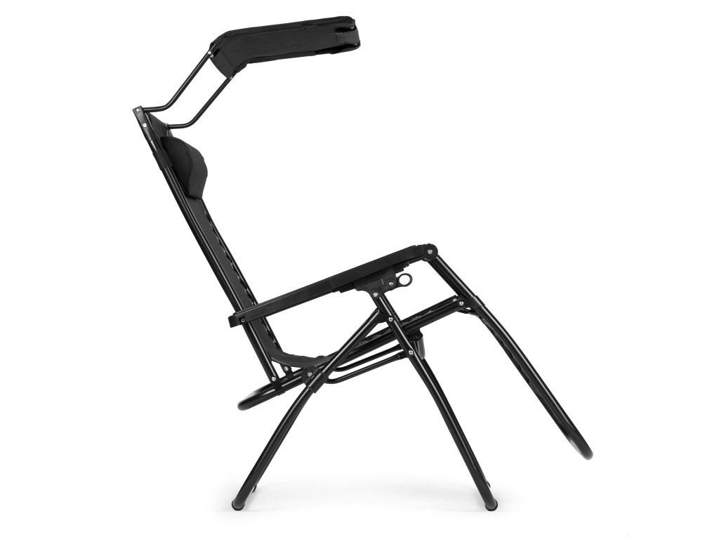 Zahradní plážové lehátko s nastavitelným opěradlem a pohyblivou stříškou Modernhome - černé