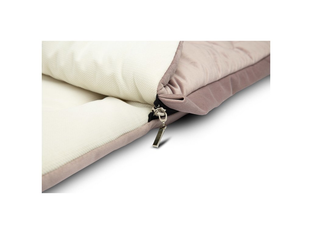 Fusak Riviera je elegantní a pohodlný. Z vnější strany je lemován elegantní prošívanou látkou vysoké kvality plyšovému charakteru, která je velmi příjemná na dotek. Fusak má uvnitř jemnou sametovou látku - velvet. Mezi nimi je navíc vrstva izolace, která zajišťuje optimální pohodlí při chladných procházkách. Fusak lze použít do hlubokých kočárků, sporťáků a taky jako fusak na sáně.